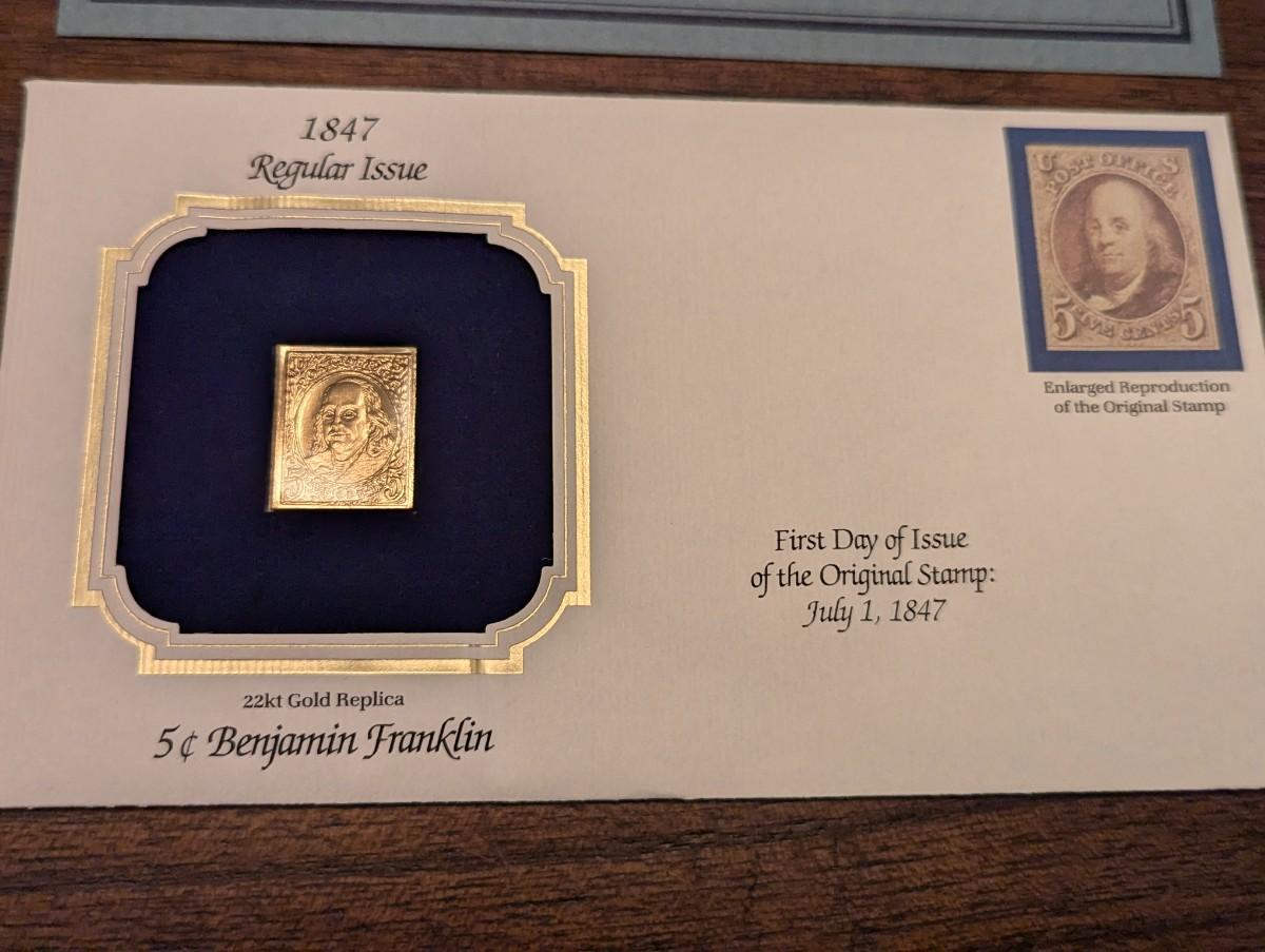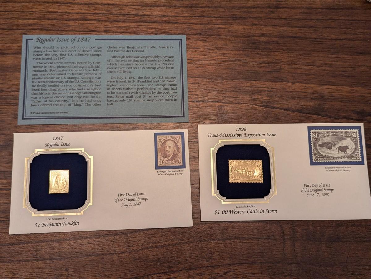 First Day Issue Benjamin Franklin & Trans Mississippi Exposition 22K Gold Replica Envelopes