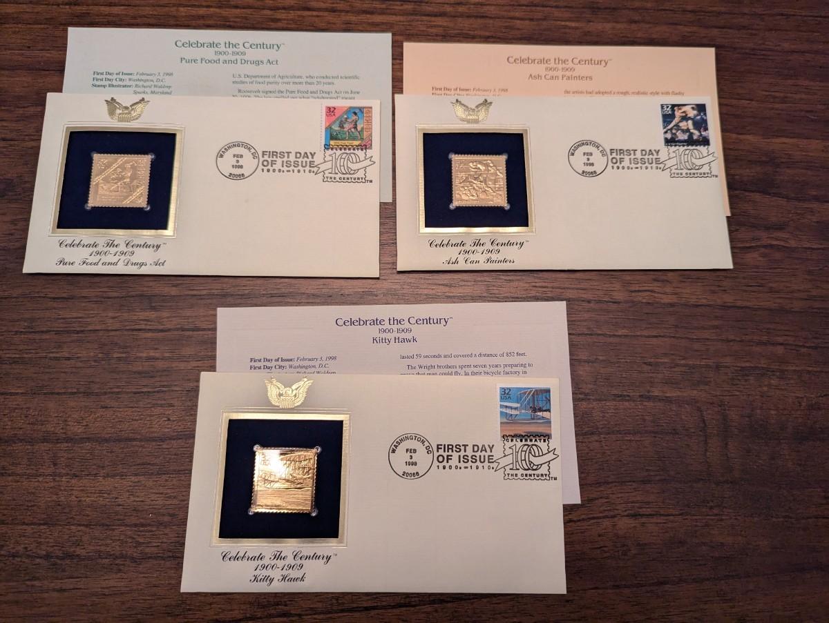 First Day Issue Celebrate The Century 22K Gold Replica Envelopes