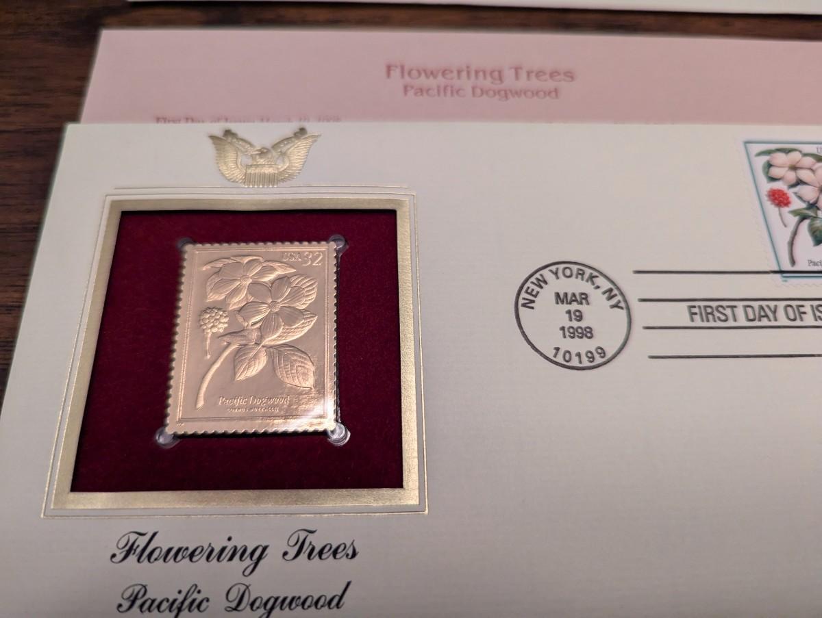 First Day Issue Flowering Trees 22K Gold Replica Envelopes