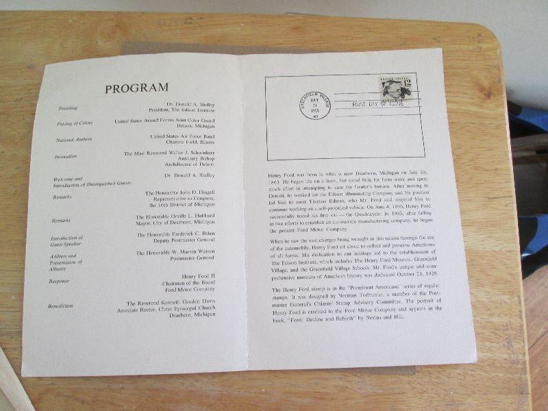 Henry Ford Prominent American 1st Day of Issue Ceremony Program