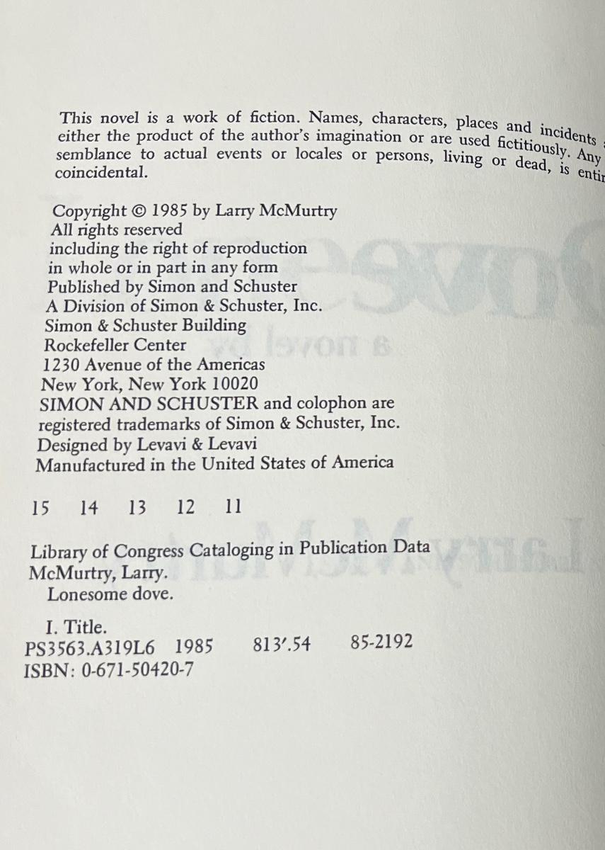 first edition lonesome dove by larry mcmurtry book, copyright 1985
