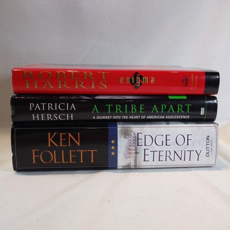 "enigma" by Robert Harris. All books are in FINE condition and have their dust jackets. All three books look to have never been read so grab these and settle in by the fireplace.