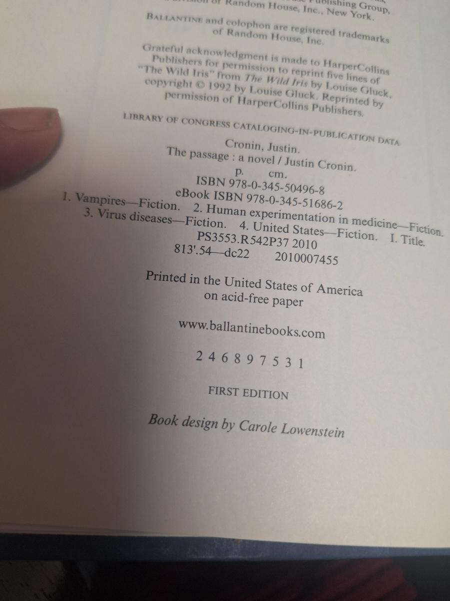 first edition of the novel The Passage by Justin Cronin