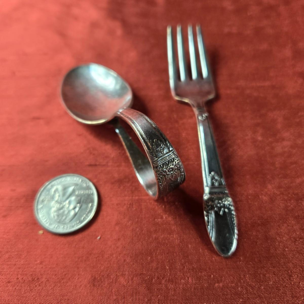 This auction lot is for a "First Love" Baby Spoon & Fork by Rogers Brothers." It is a very nice set of baby utensils. They are a matched se of "First Love" pattern by Rogers Brothers. They are silver plated in used condition and ready to be used again. So sweet and looking for their next pampered baby.