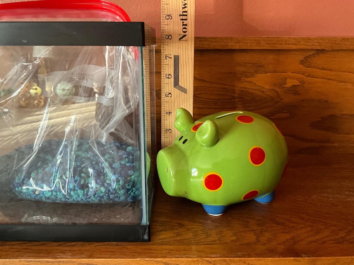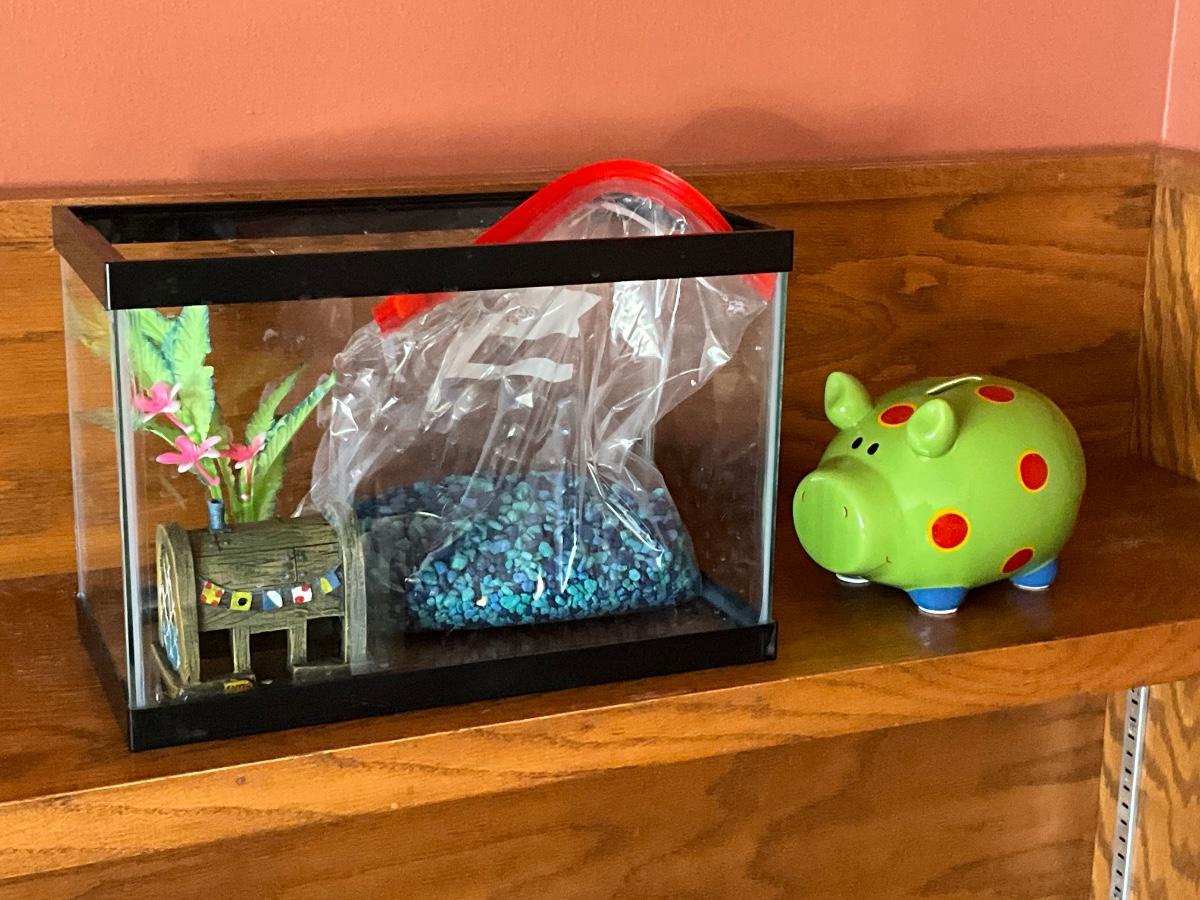 Fish aquarium and ceramic piggy bank