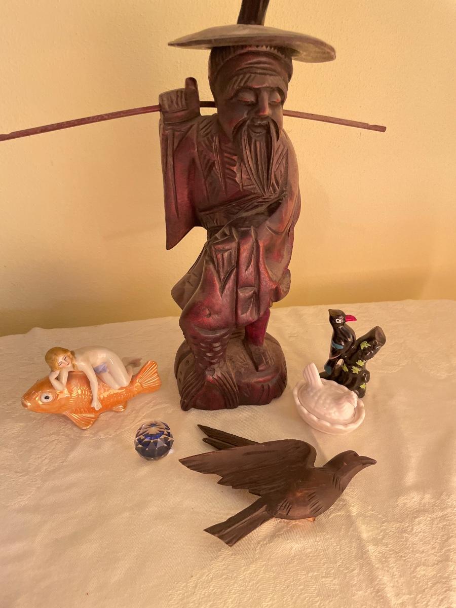 Wooden fisherman and bird