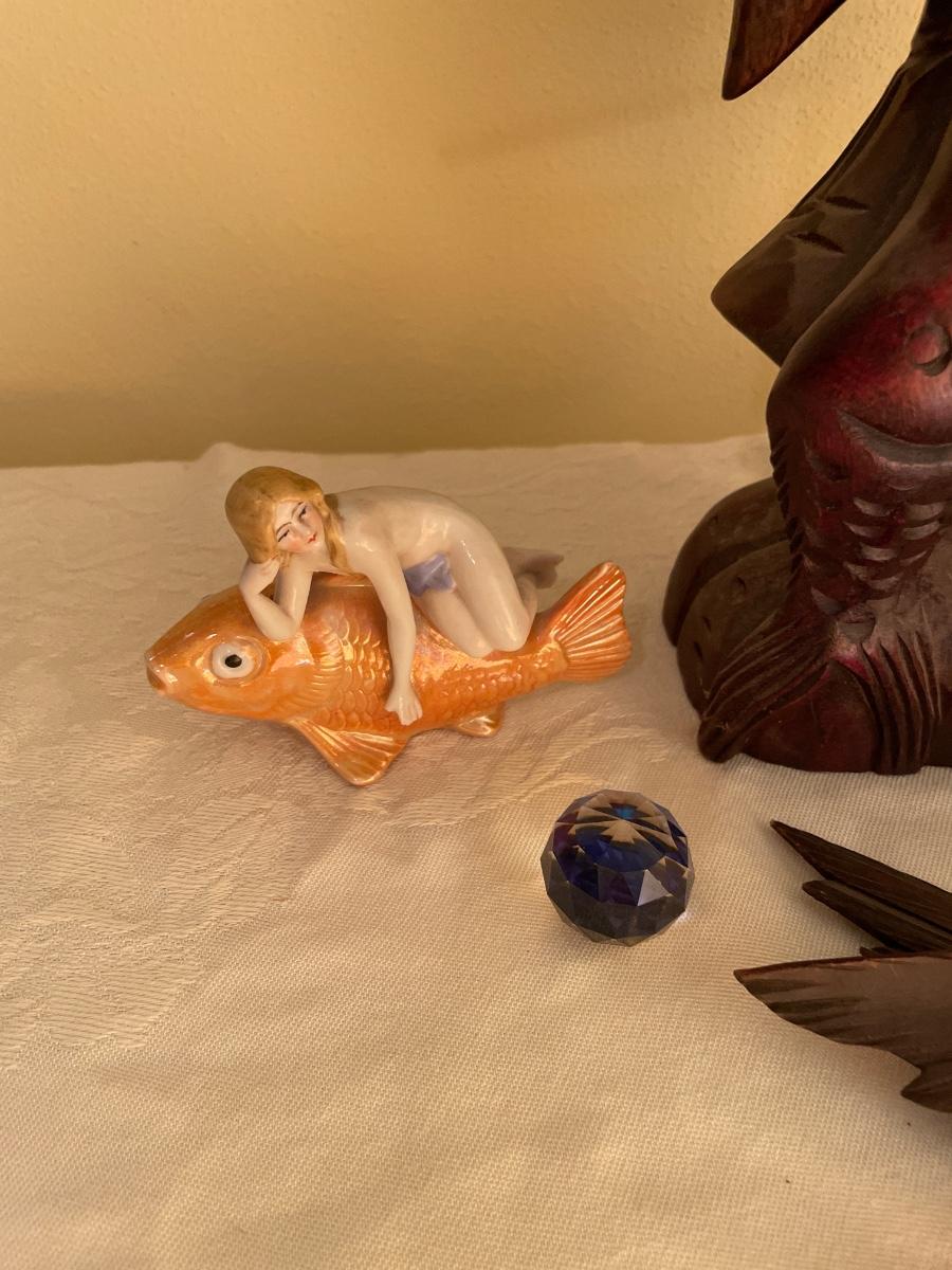Porcelain girl with fish and birds