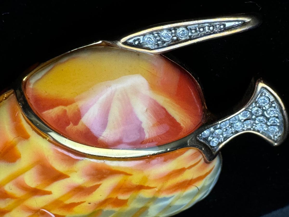 Vintage Fish Brooch / Pin Enamel & Rhinestones - Signed