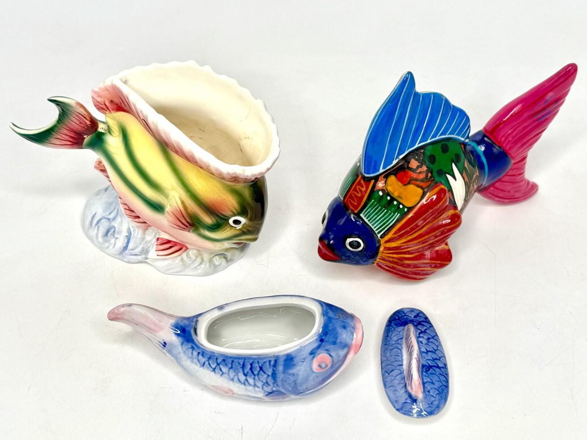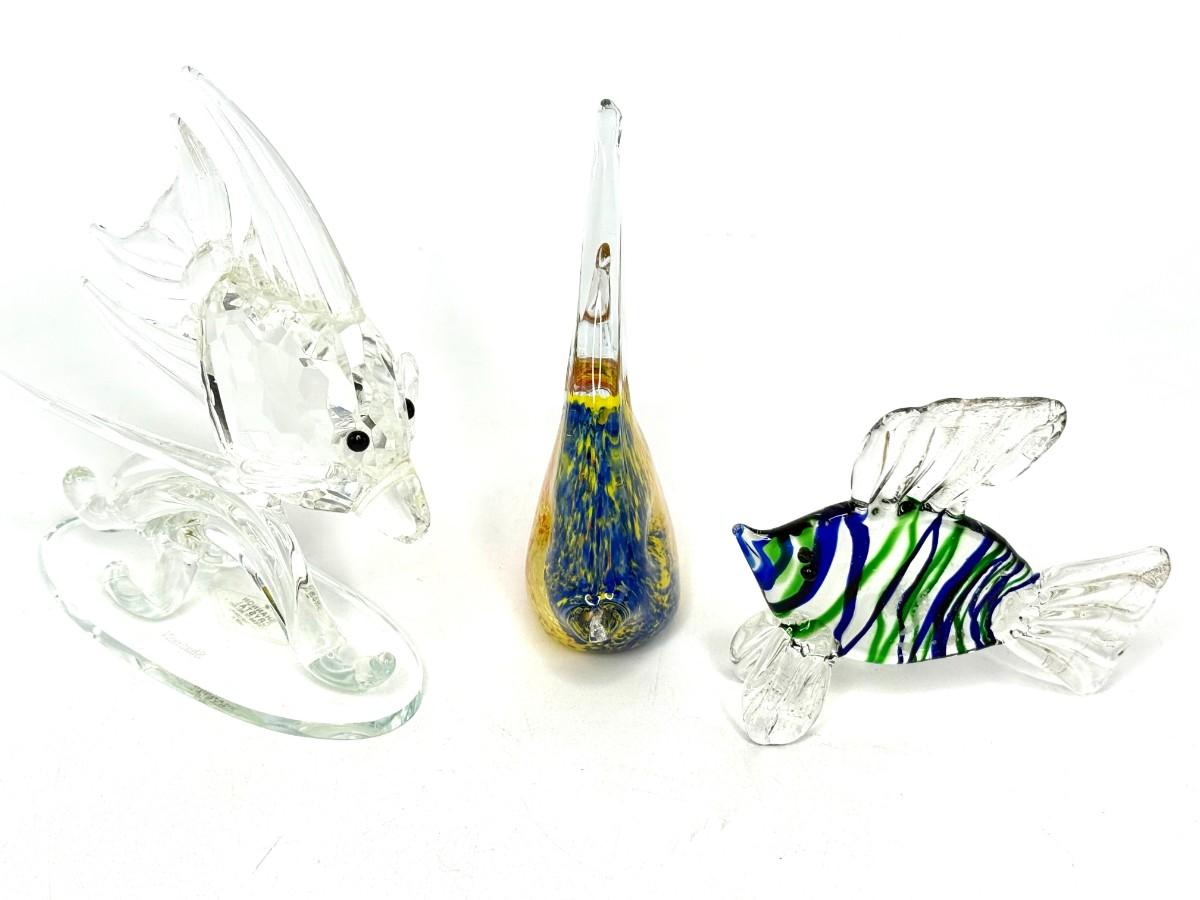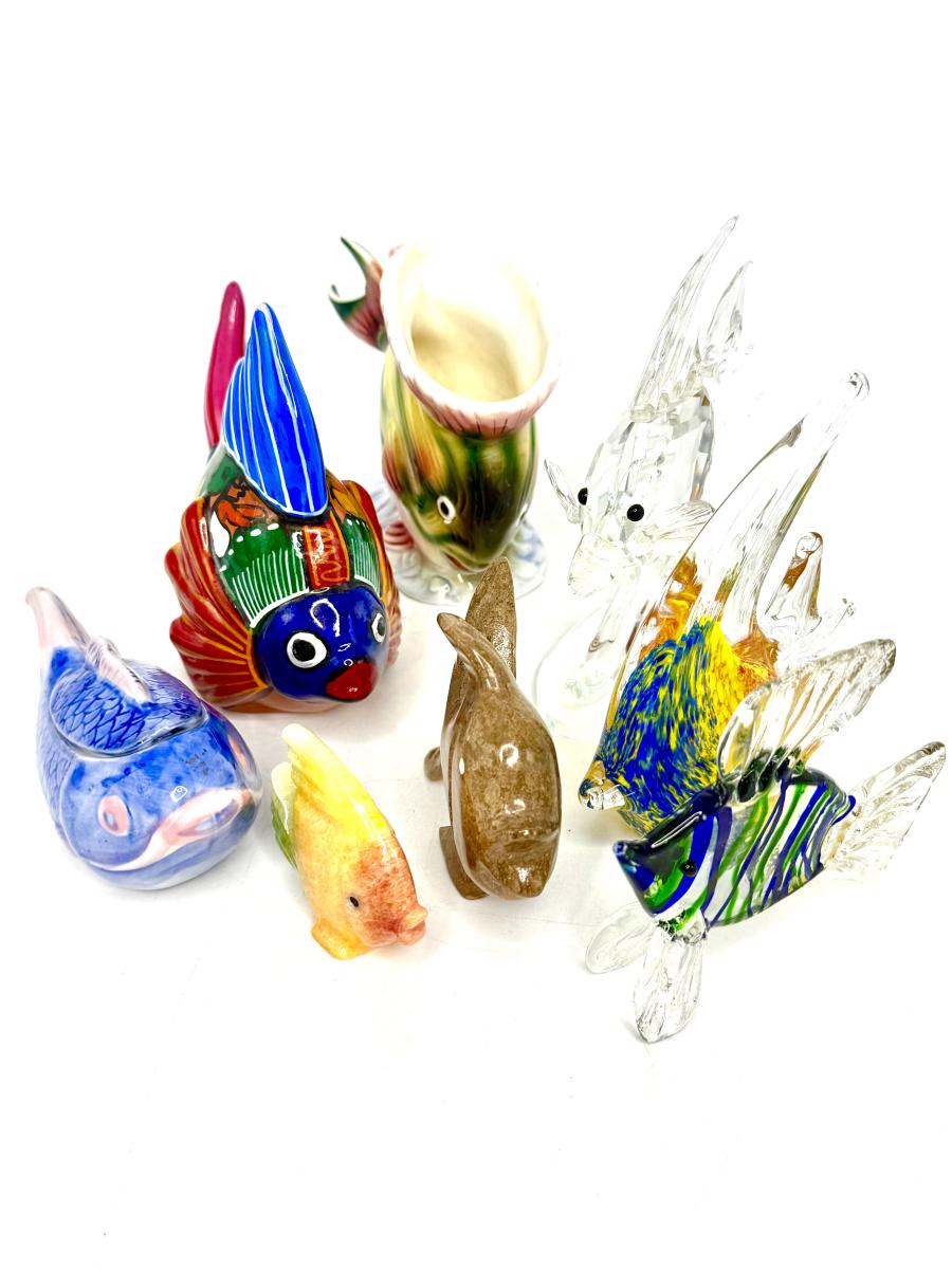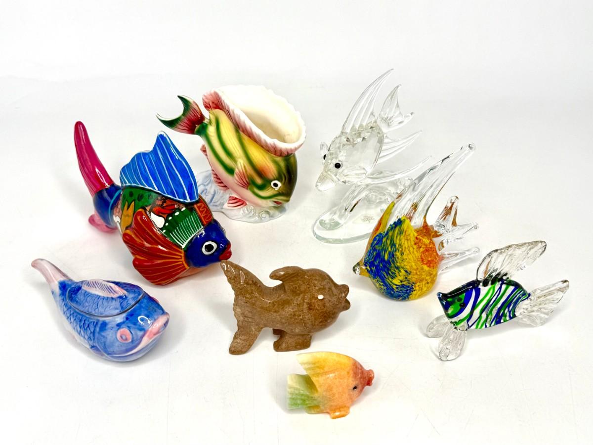 Fish Figurine Lot - Blown Glass, Crystal, Pottery, Stone