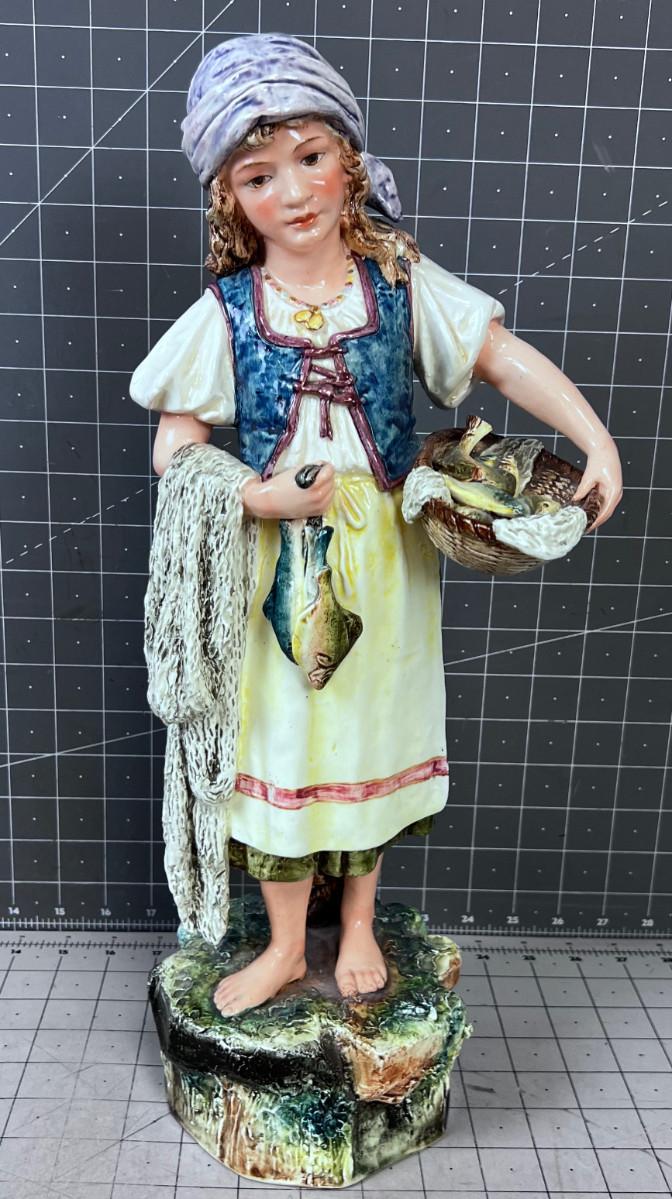 17" Tall Good Condition. Weight about 5 pounds. Continental Majolica.