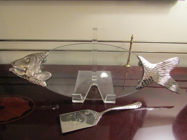 Fish Shaped Serving Plate with Spatula- Glass and Metal (Stand Not Included)