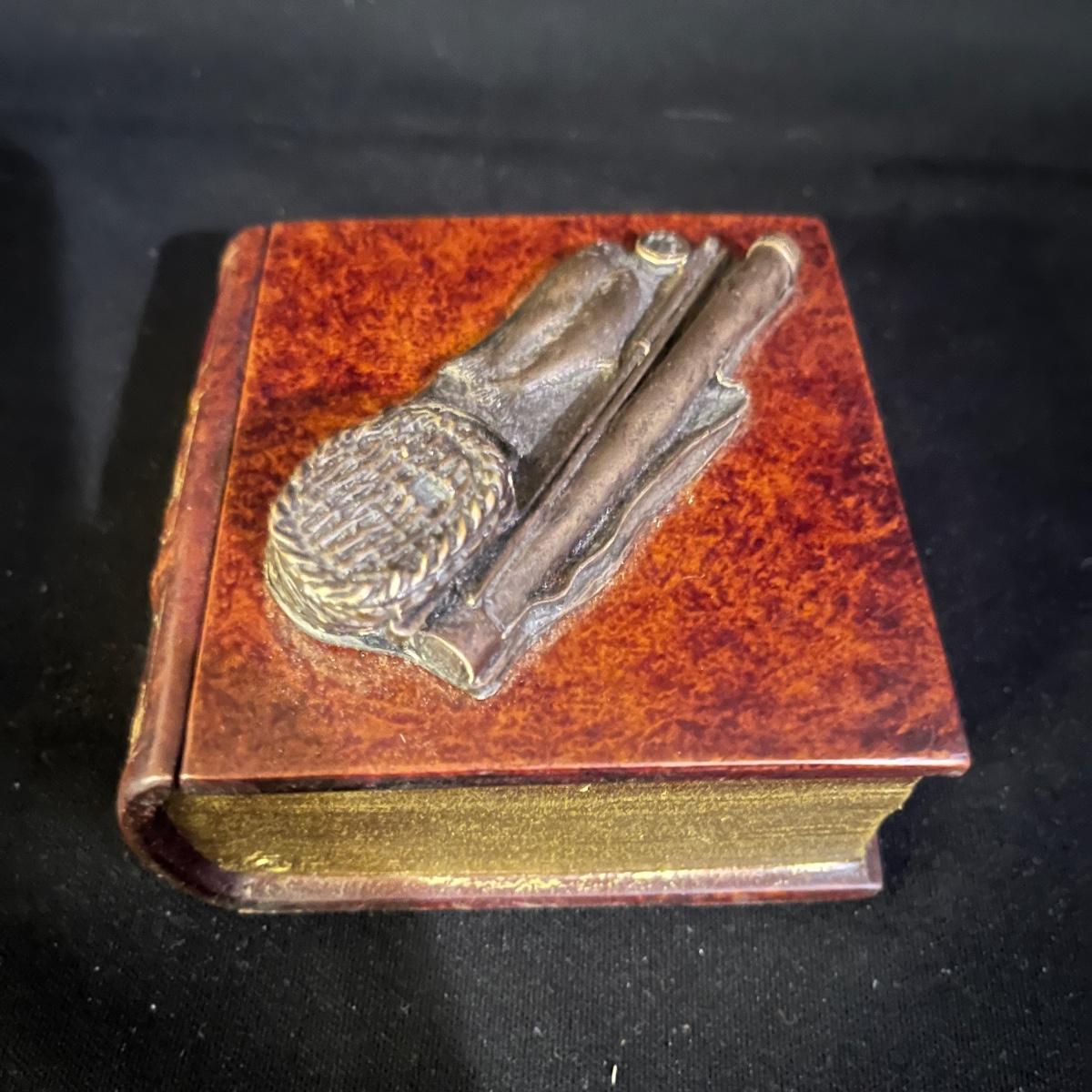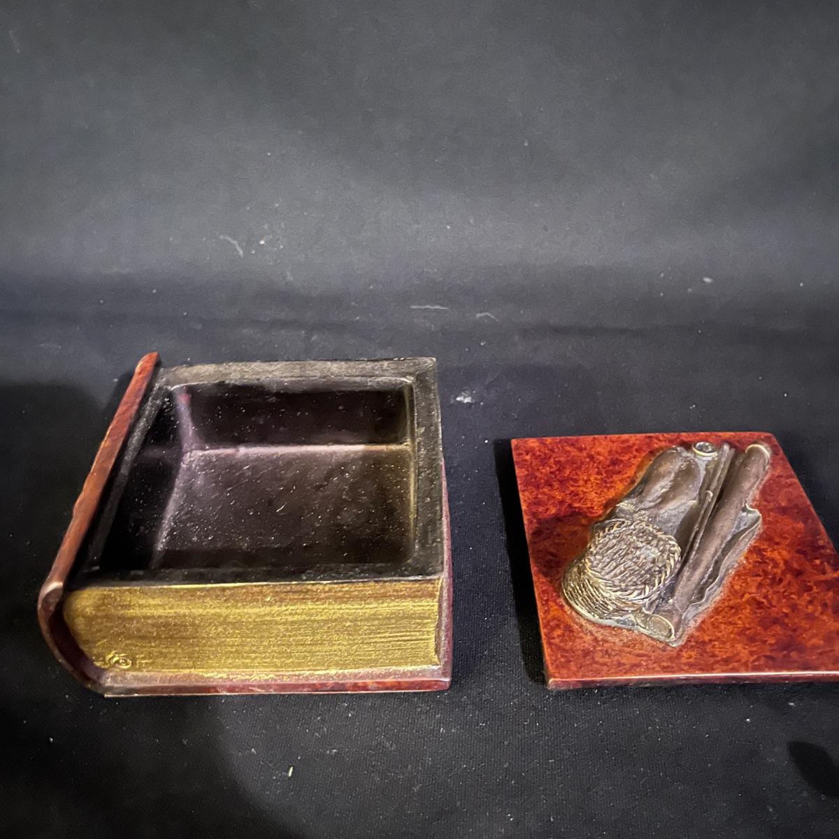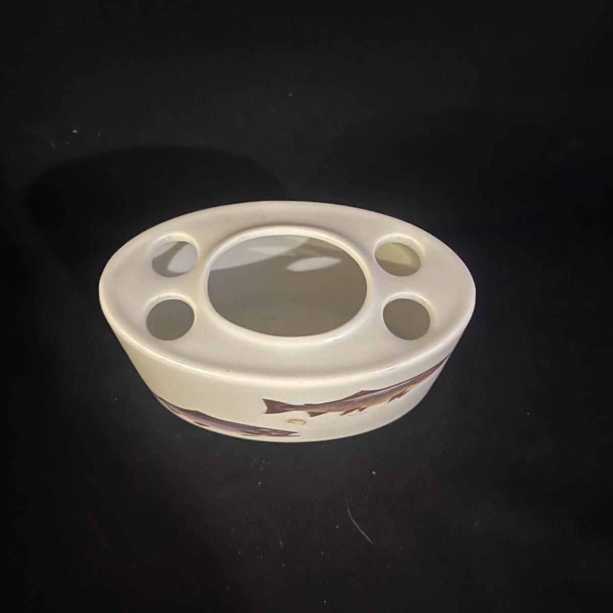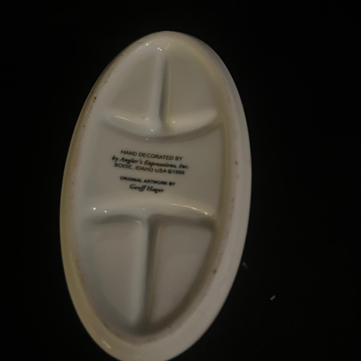 Lot includes platter, ceramic toothbrush holder, six napkin rings, four skewers, four wall mounted hooks, bowl, book shaped box and more. Platter measures 10” x 14” x 2.25”H. Also includes a resin and wood picture frames with the largest measuring 7.5” x 9.5”.