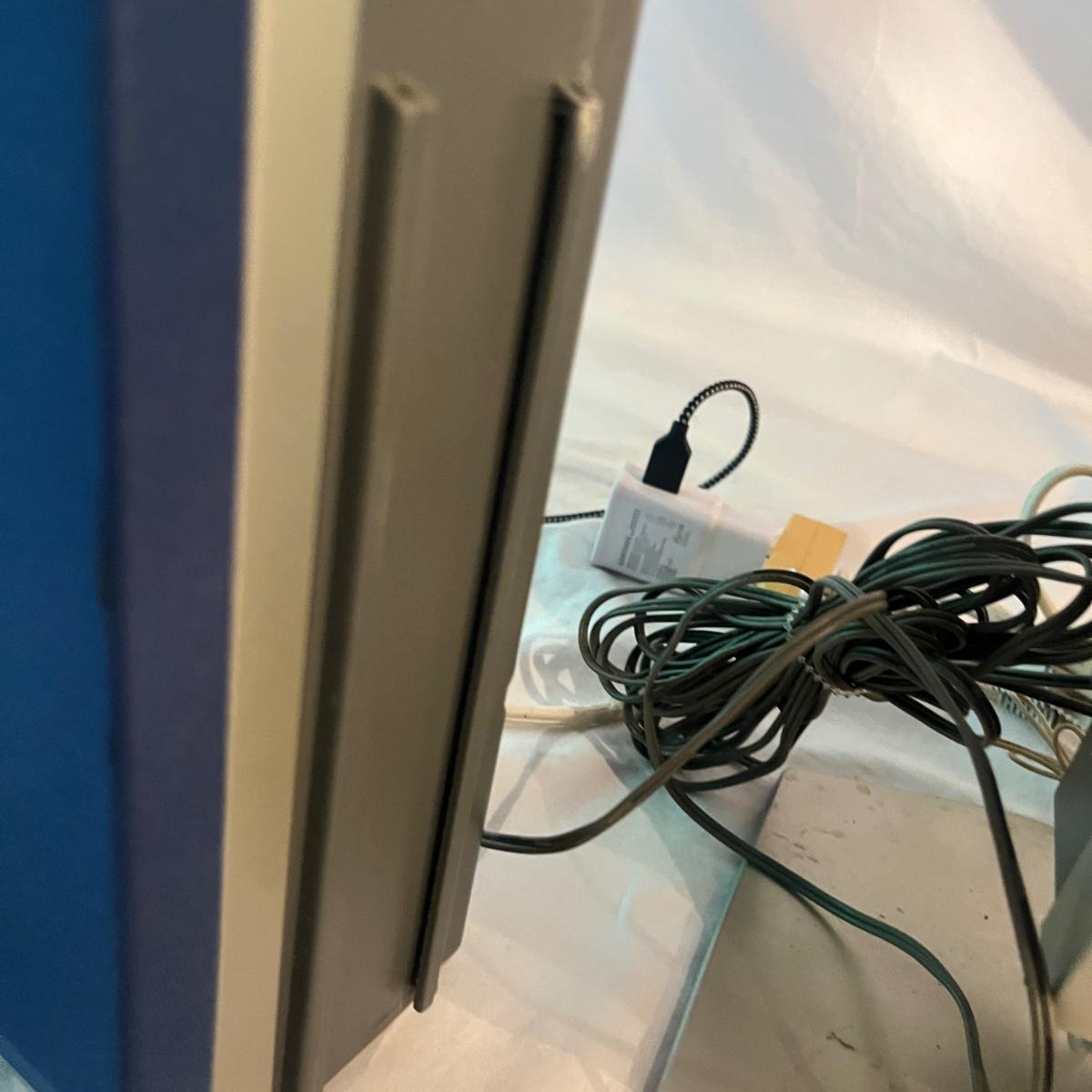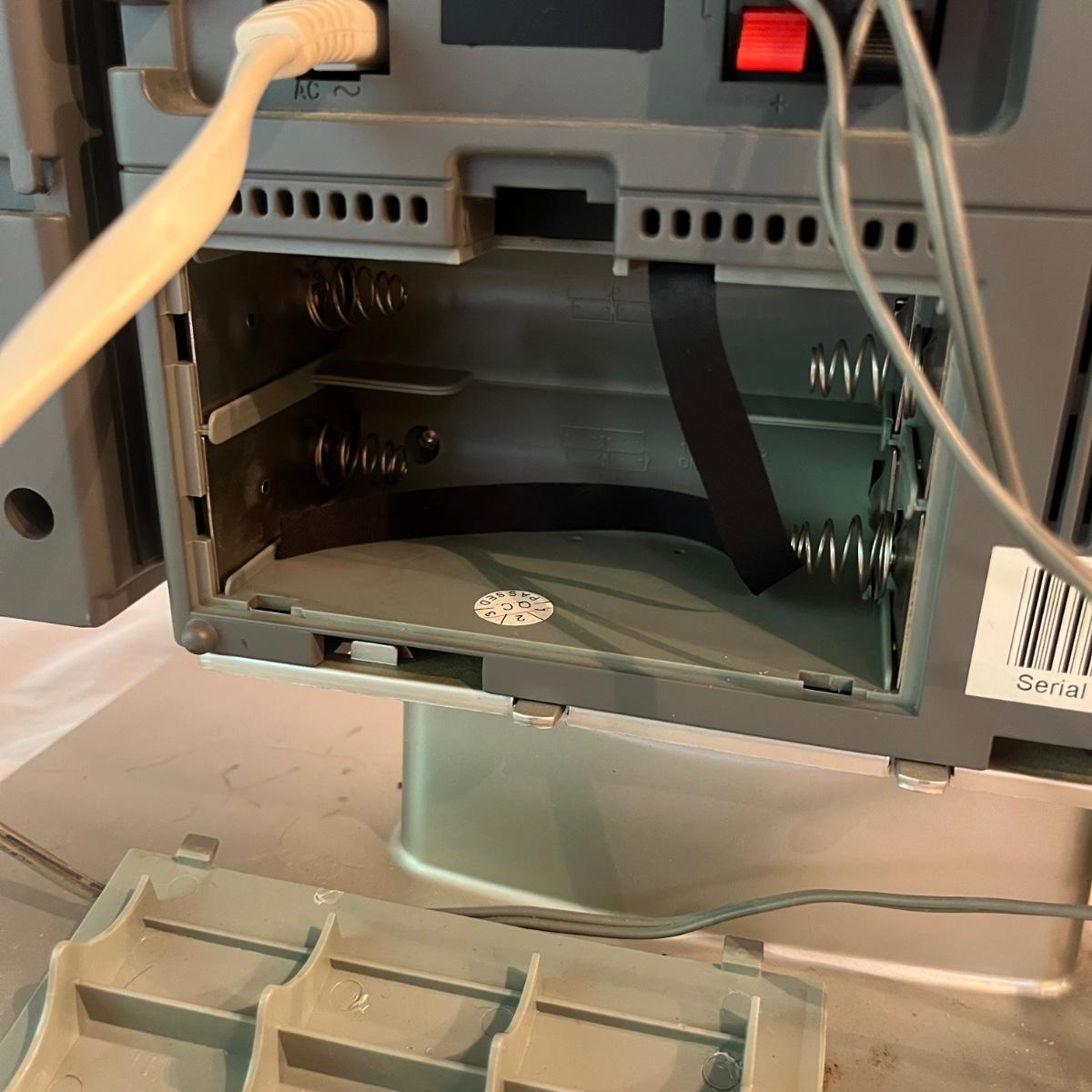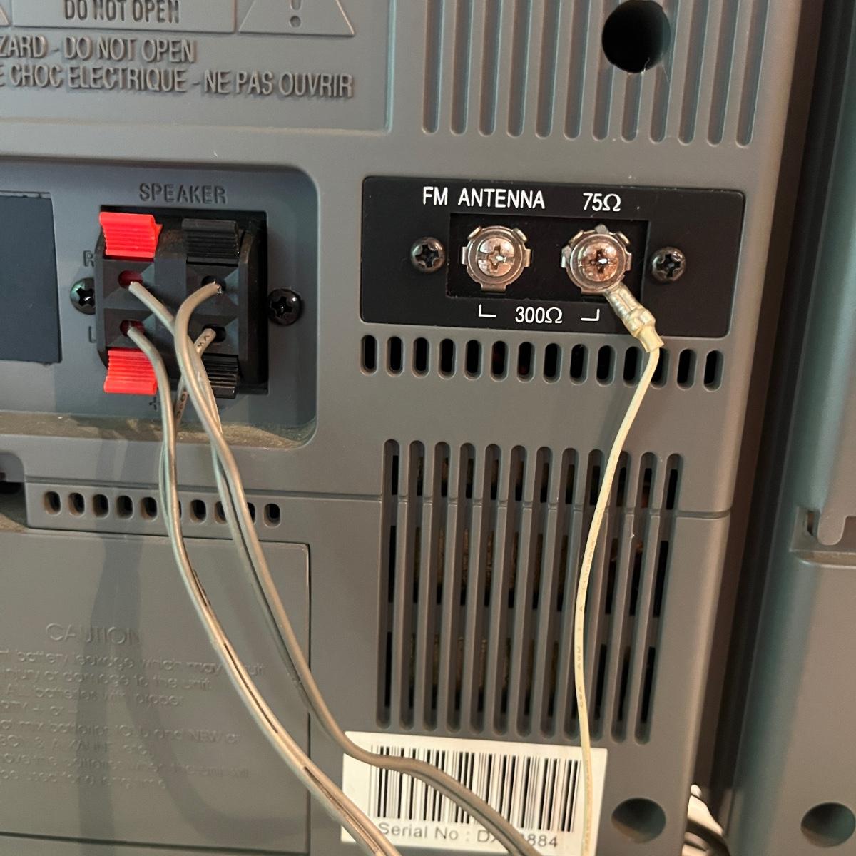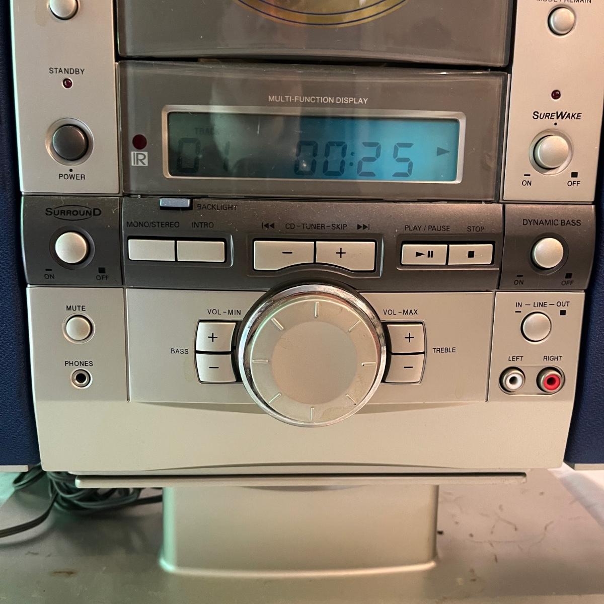 This Fisher AM/FM CD player has detachable speakers and powered on when plugged in, battery power was not tested as it has no batteries. Stereo measures 22” x 7” x 14”H.