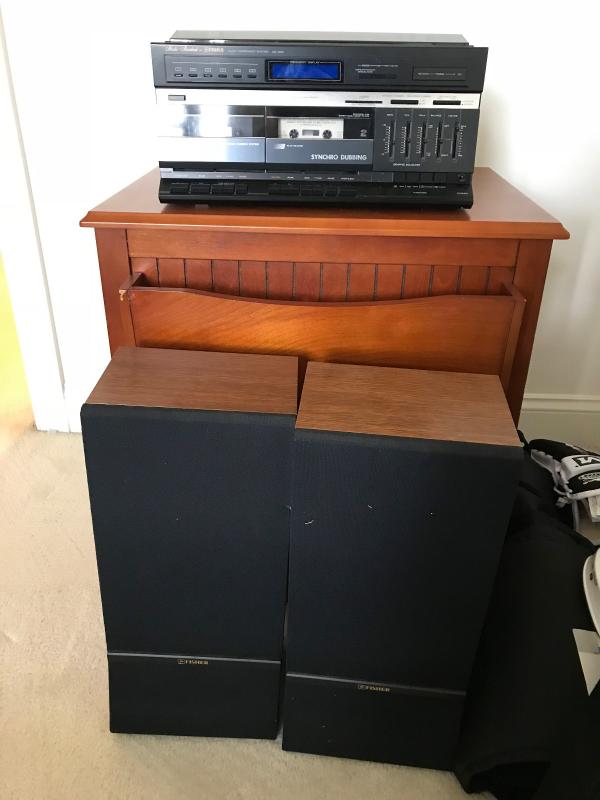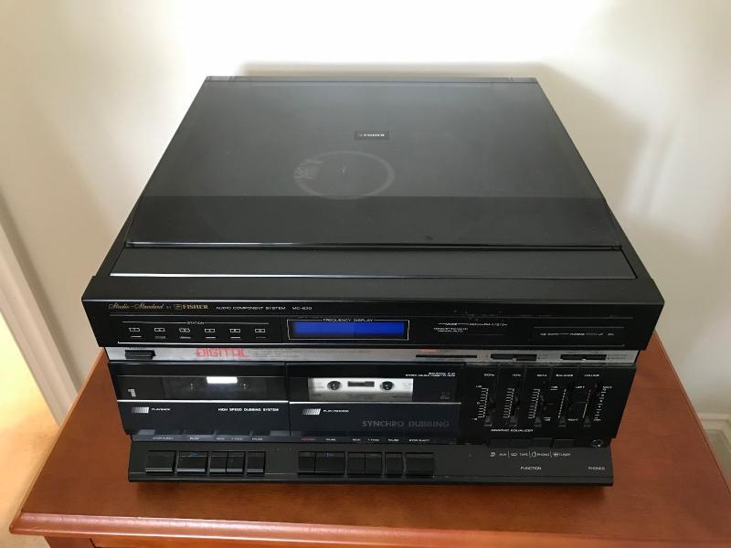 Fisher MC-620 double casset tape digital player, turntable, AM/FM stereo. Includes pair of Fisher MS-710 speakers