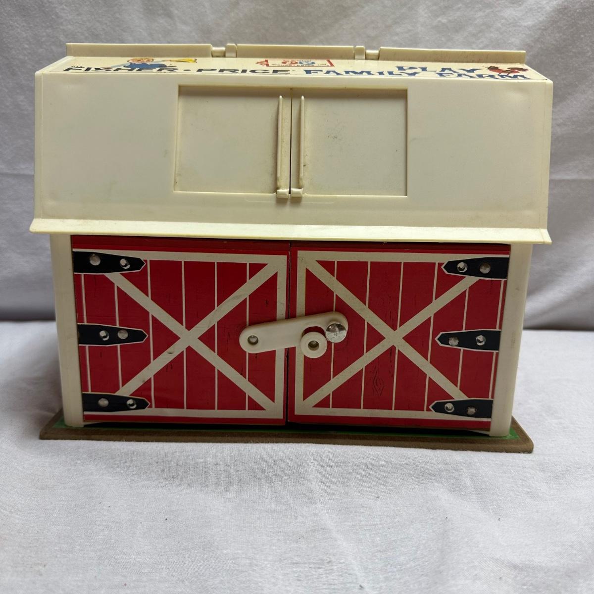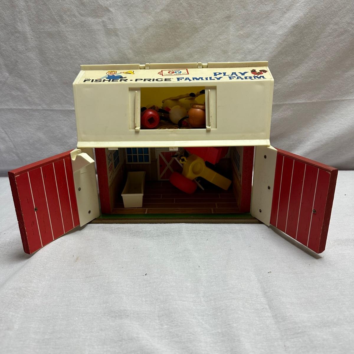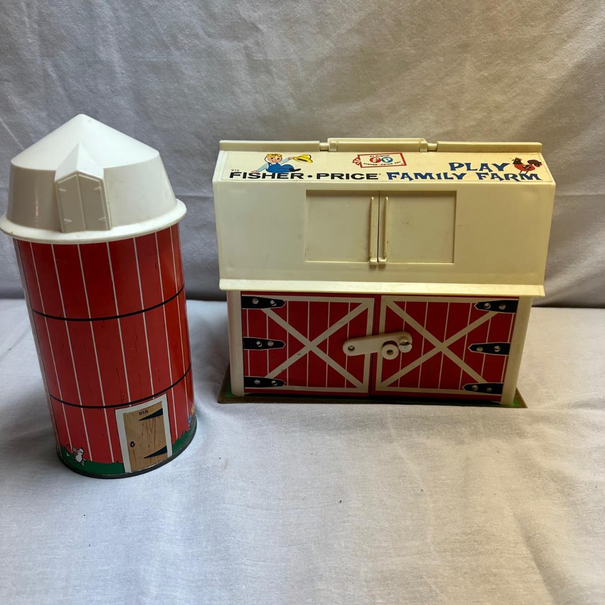 Fisher Price Family Play Farm with animals, tractor and silo. Barn appears to be made of engineered wood and plastic and measures 11” x 7.5” x 9”. School bus and a child’s guidance toy that offers hand guided tasks. Shipping available.