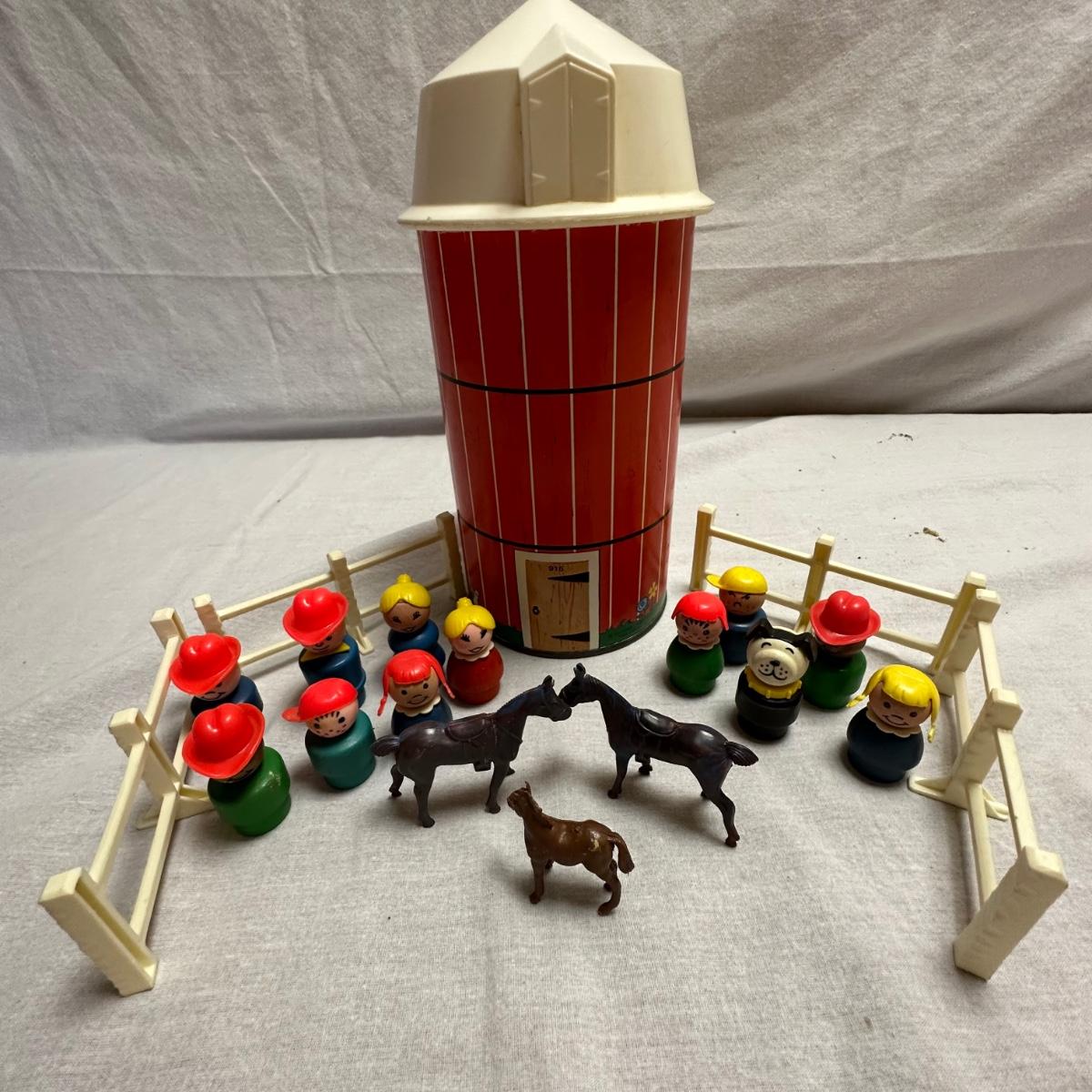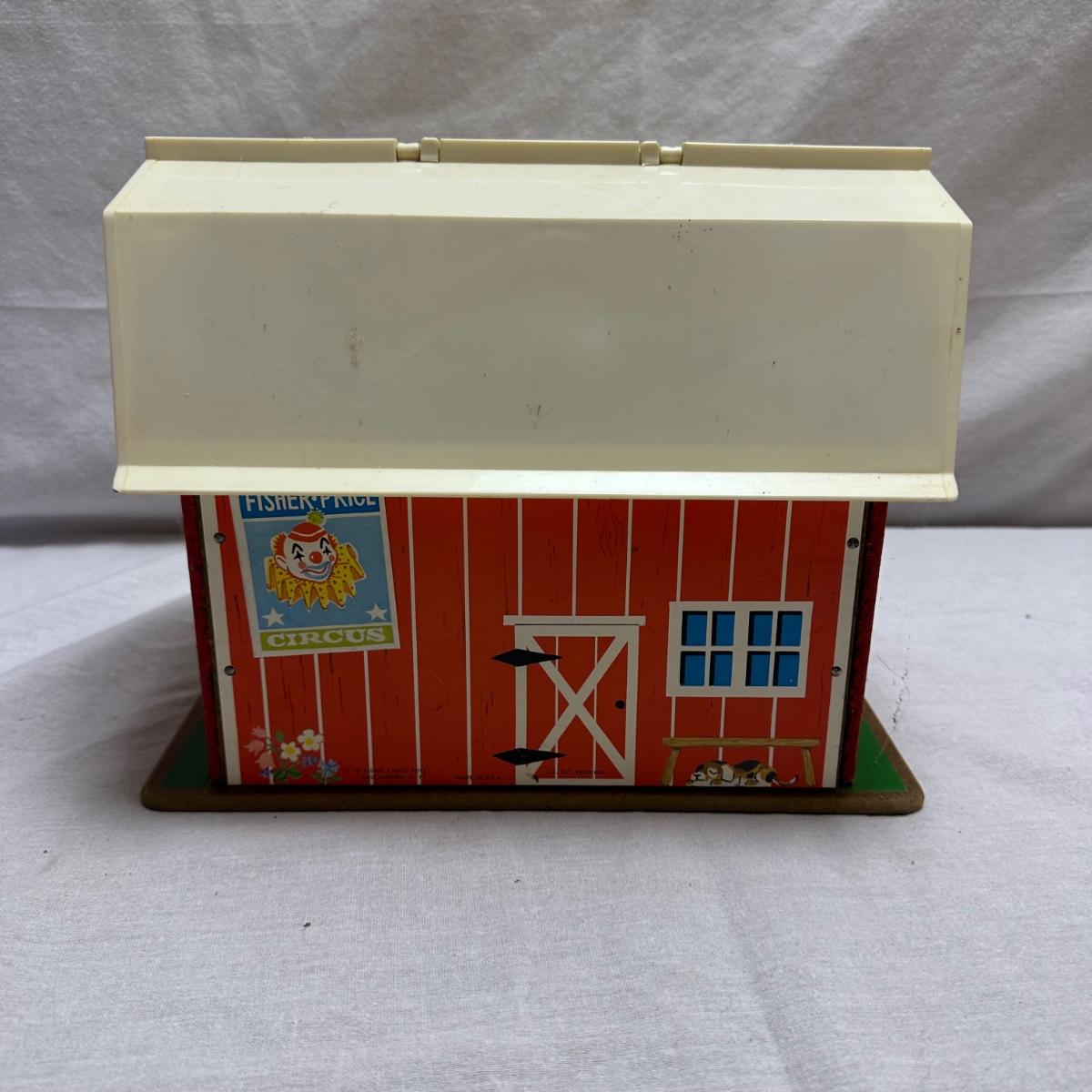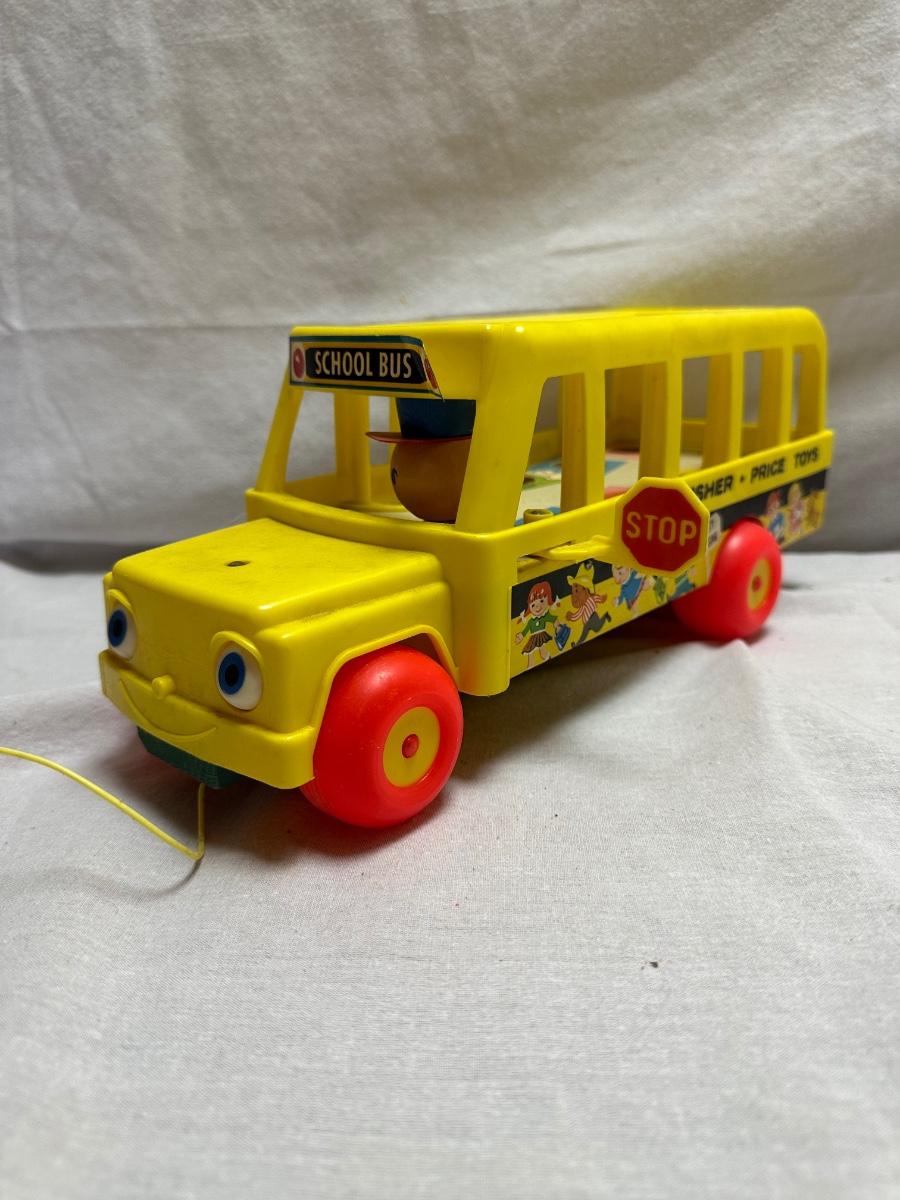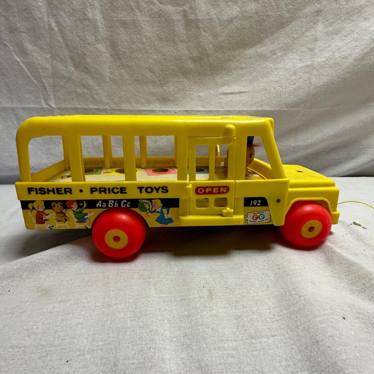 Fisher Price Family Play Farm with animals, tractor and silo. Barn appears to be made of engineered wood and plastic and measures 11” x 7.5” x 9”. School bus and a child’s guidance toy that offers hand guided tasks. Shipping available.
