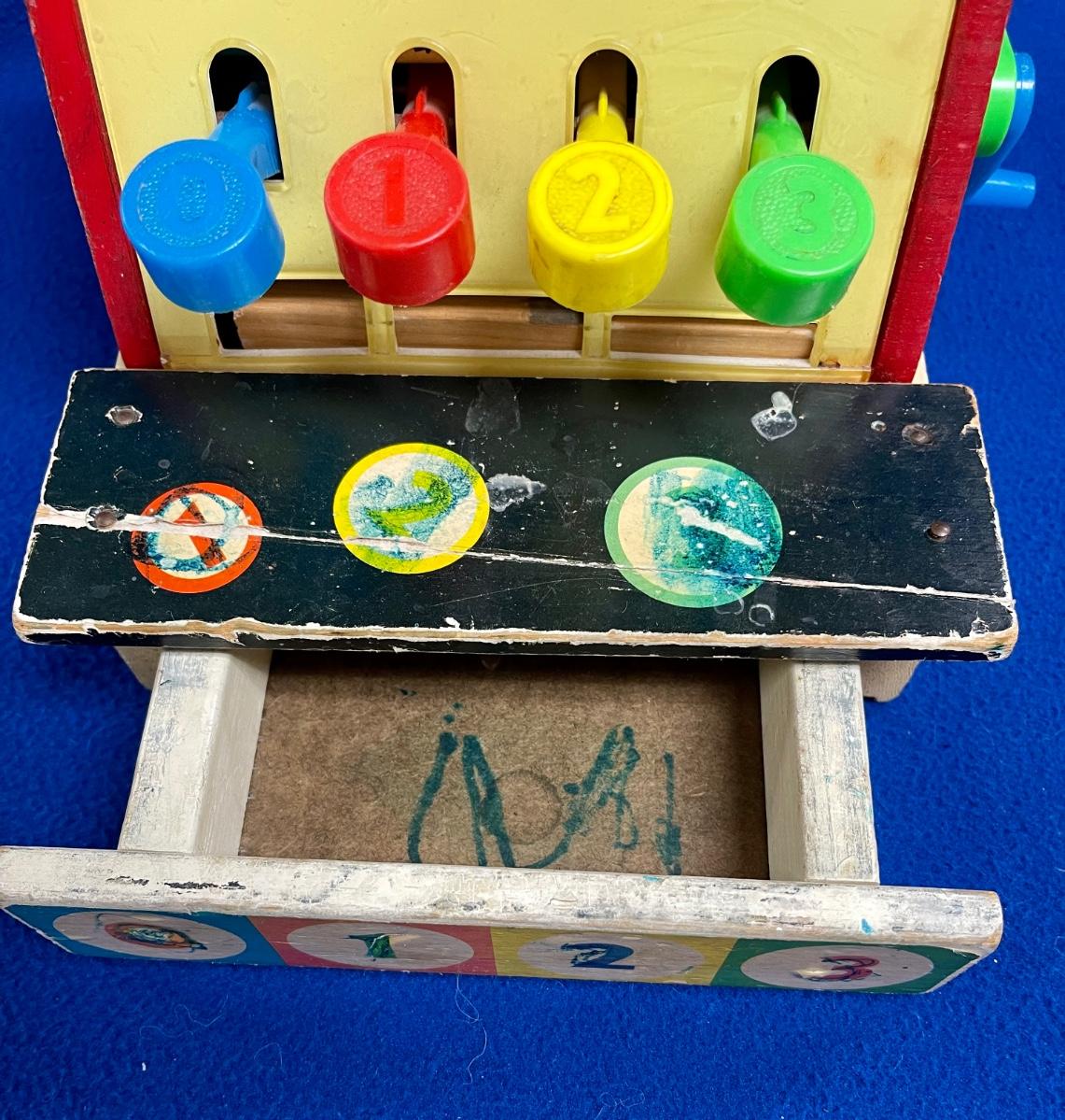 This cash register is in good condition. It is fully functional. There is a crack in the wood on the top piece shown in the pictures, but it’’s not loose.