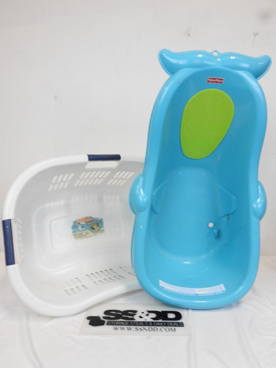 Fisher Price Infant  Bathtub & Rubbermaid  Laundry Basket, Basket Missing Piece