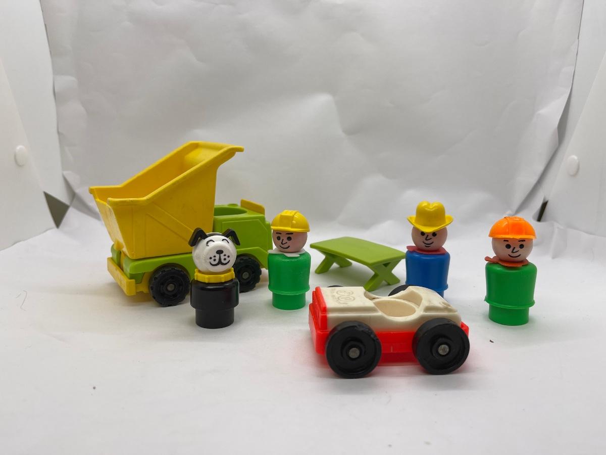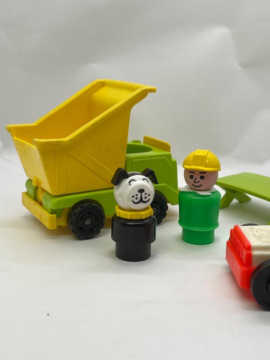 Fisher Price Little People Play set Accessories - LOT 15 - Dump Truck, Car, Picnic Bench, People, Dog