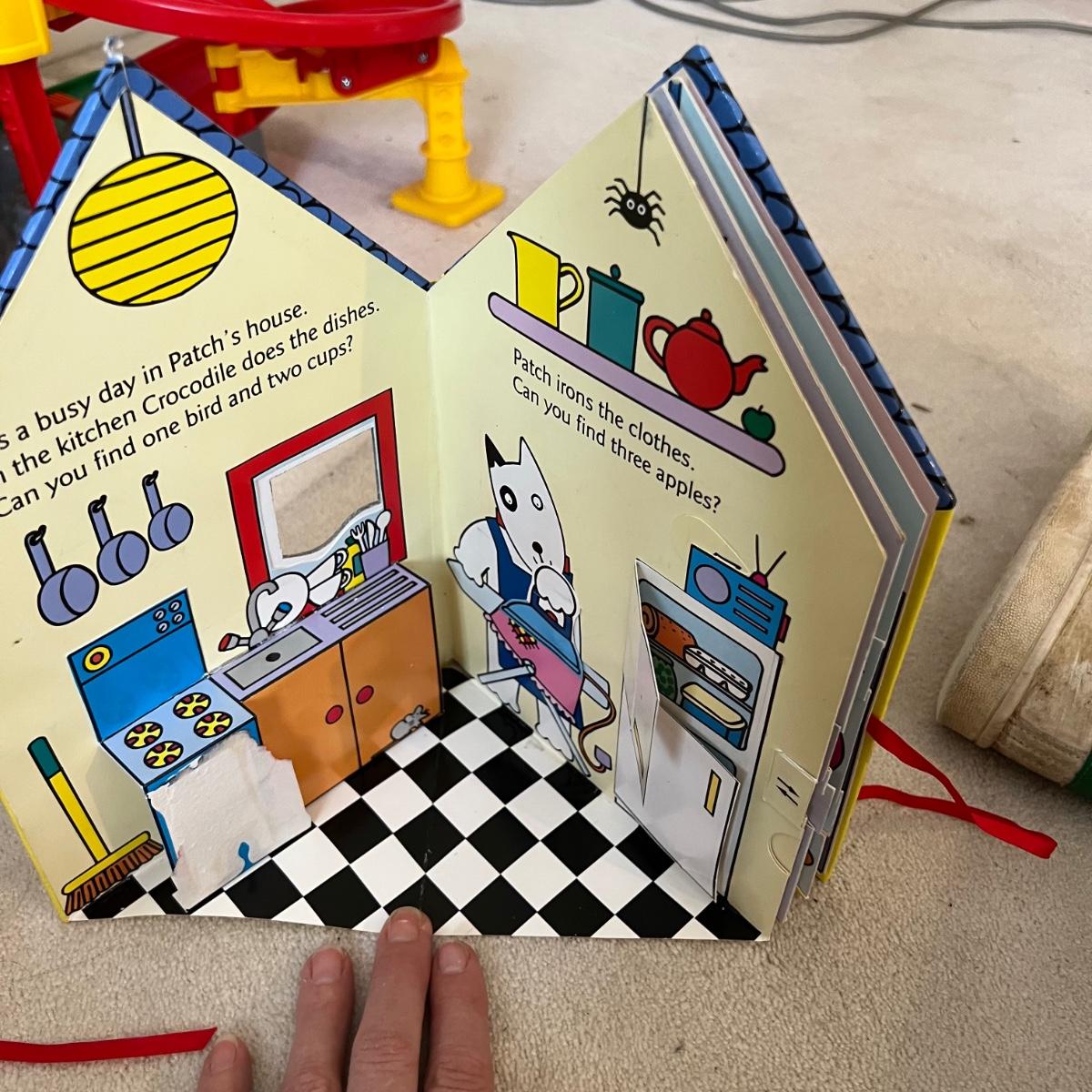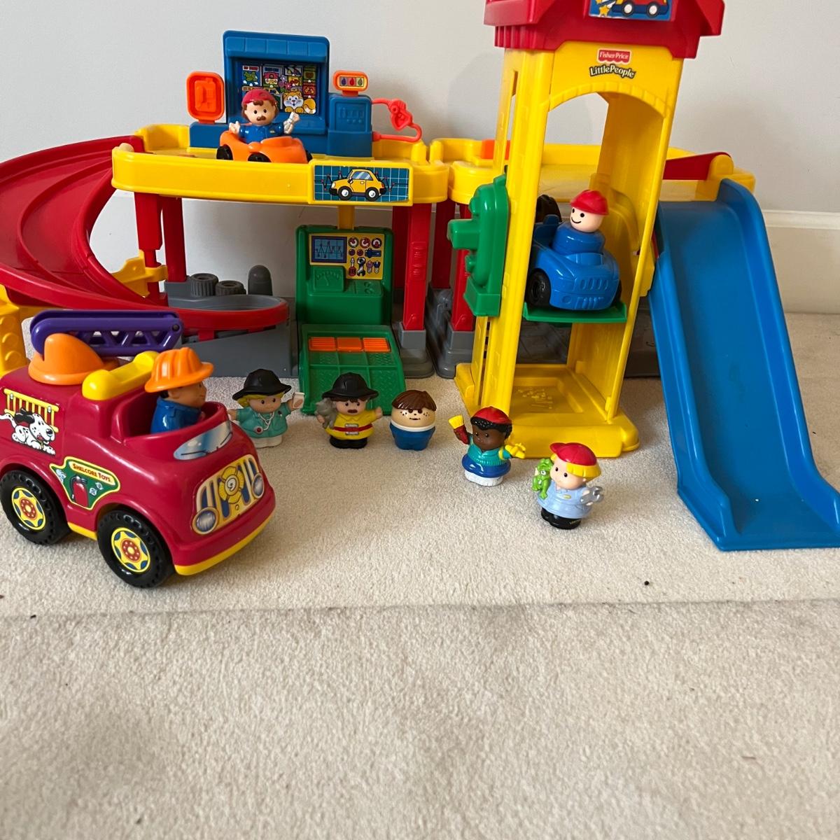 Fisher Price Little People Ramps Around Garage, Little people, two vehicles, three board books, a collection of nine Patch books (by Jo Lodge), one pop up book and a box set of Beatrix Potter photo albums (in very good condition). Shipping available. Shipping can be costly. We suggest calling our local UPS store and getting a quote before bidding: (828) 252-6930.