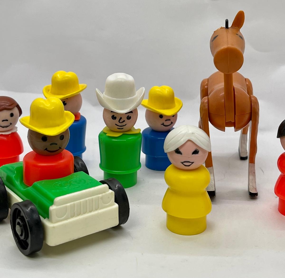 Fisher Price Play Set Little People Accessories - LOT 4 - Car, Fire Truck, People, Dog, Horse