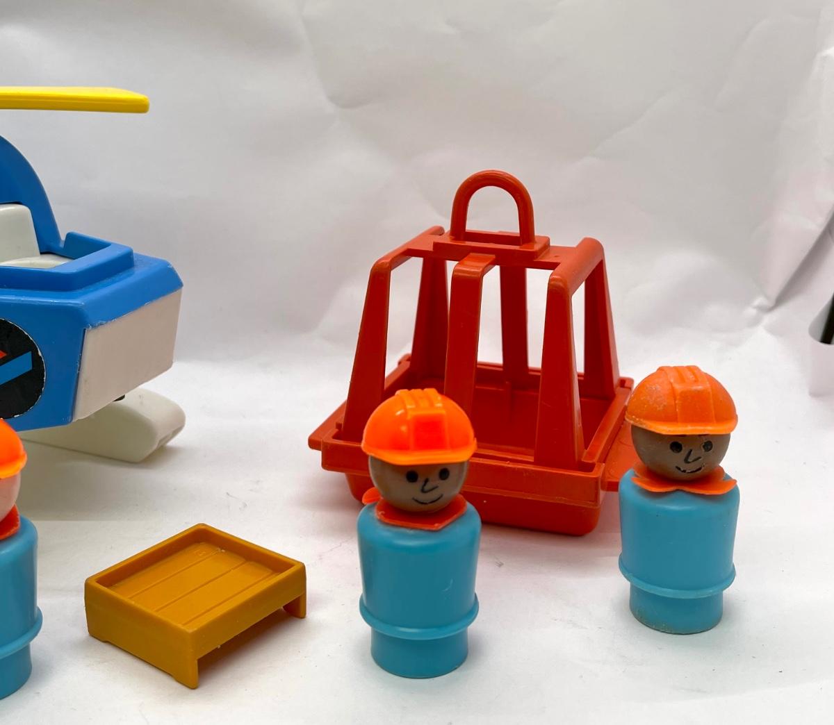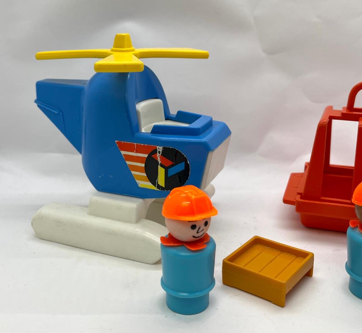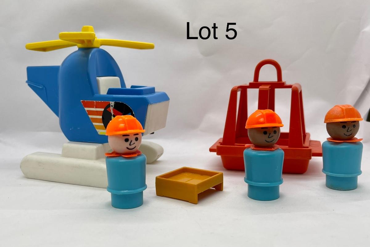 Fisher Price Play Set Little People Accessories - LOT 5 - Helicopter, People, Lift Cage, Small Platform