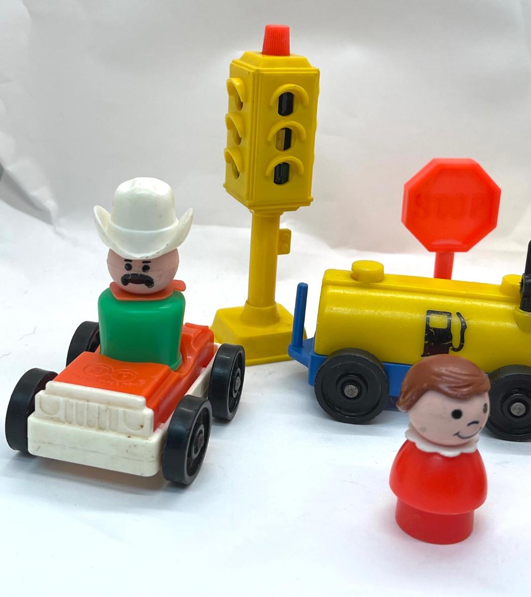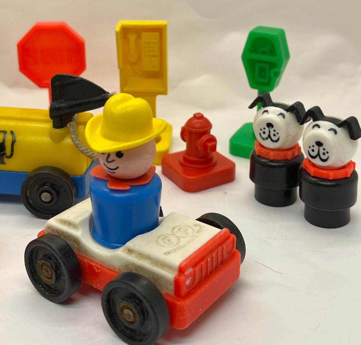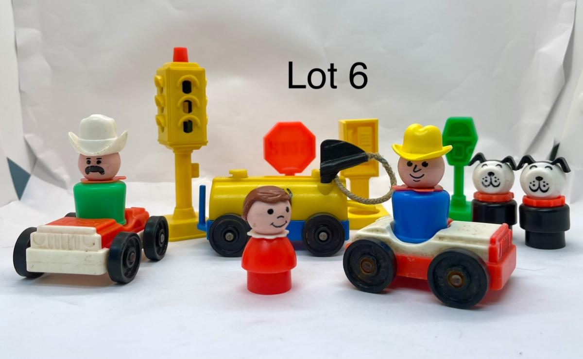 Fisher Price Play Set Little People Accessories - LOT 6 - Cars, People, Dogs, Traffic Signs