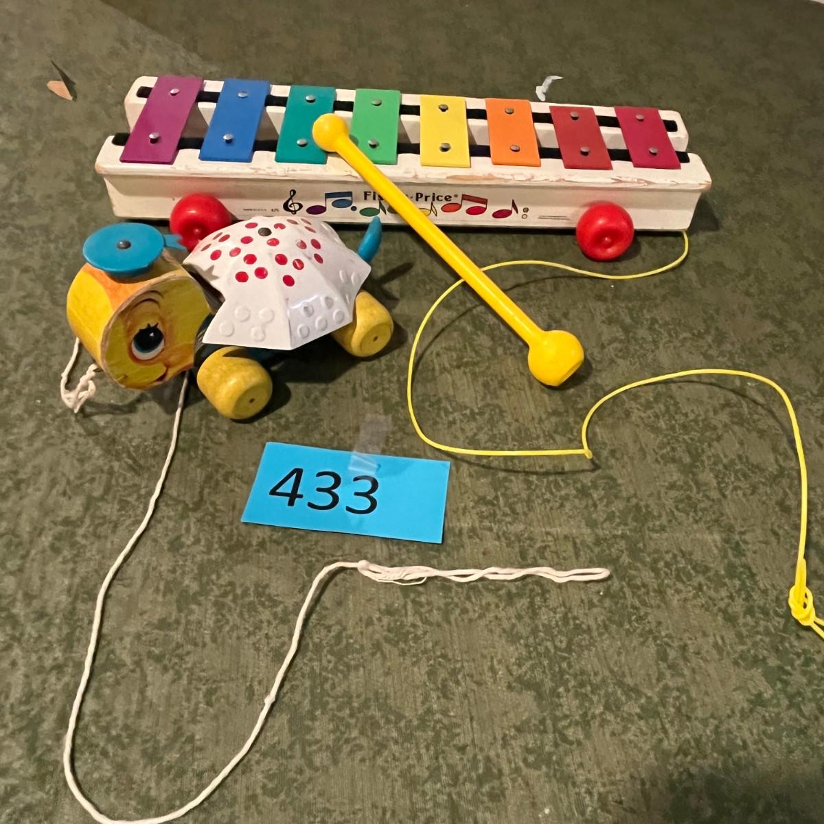 Xylophone with hammer and Turtle pull toy. Both with the strings!