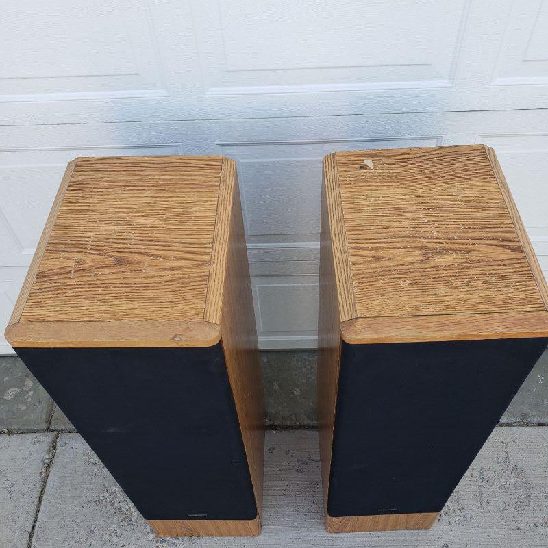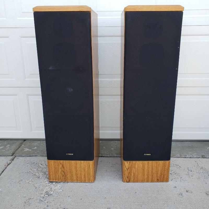 Pair of Fisher STV-911AV Speakers. Three way system with 2 active bass drivers.