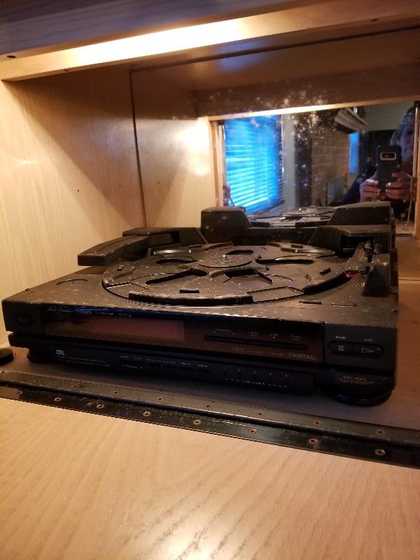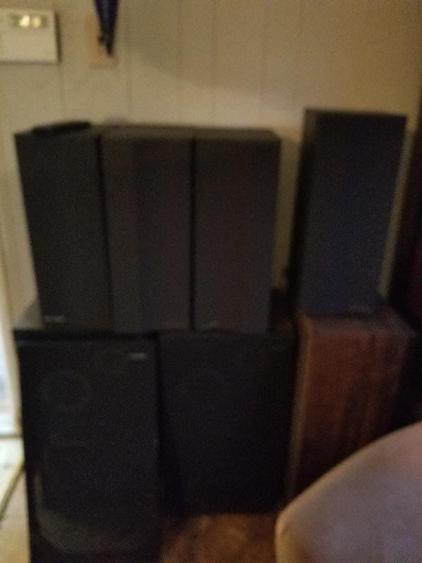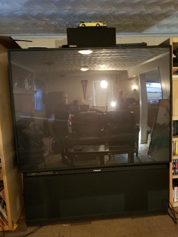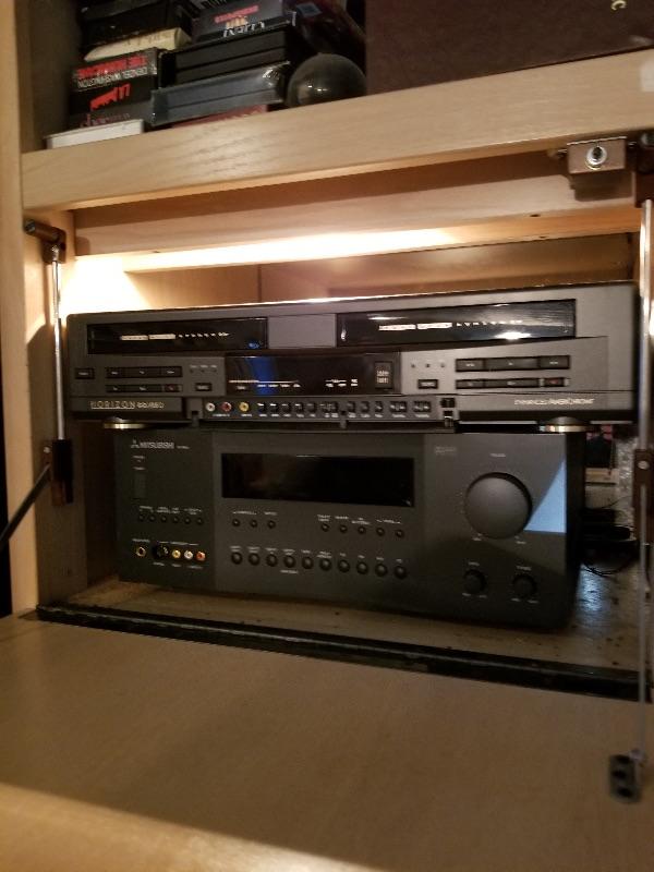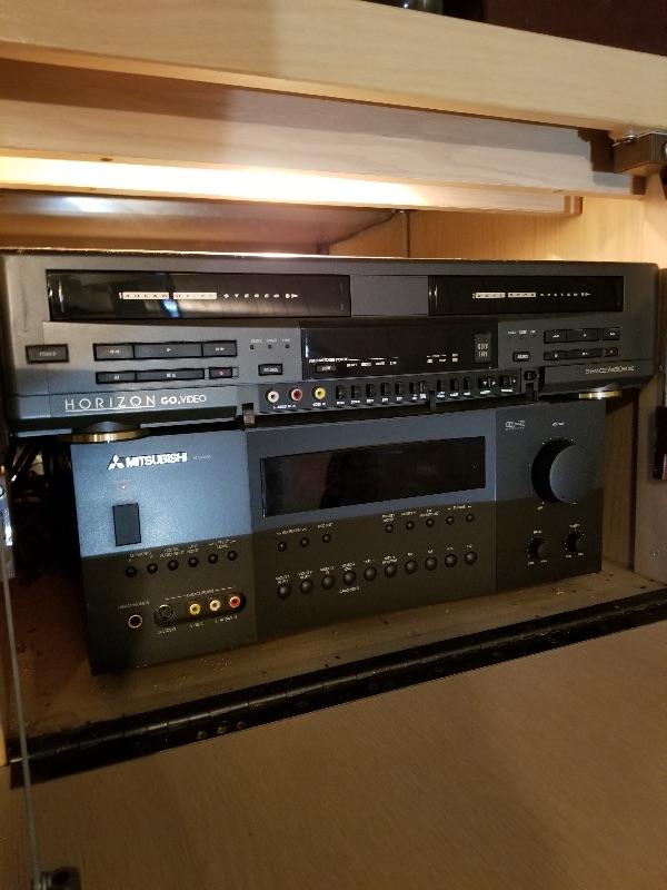 TV, Fisher Turn T/Syn/Stereo Amp/Cass/Mitsubishi Rec,Sub, Speakers & Go Video