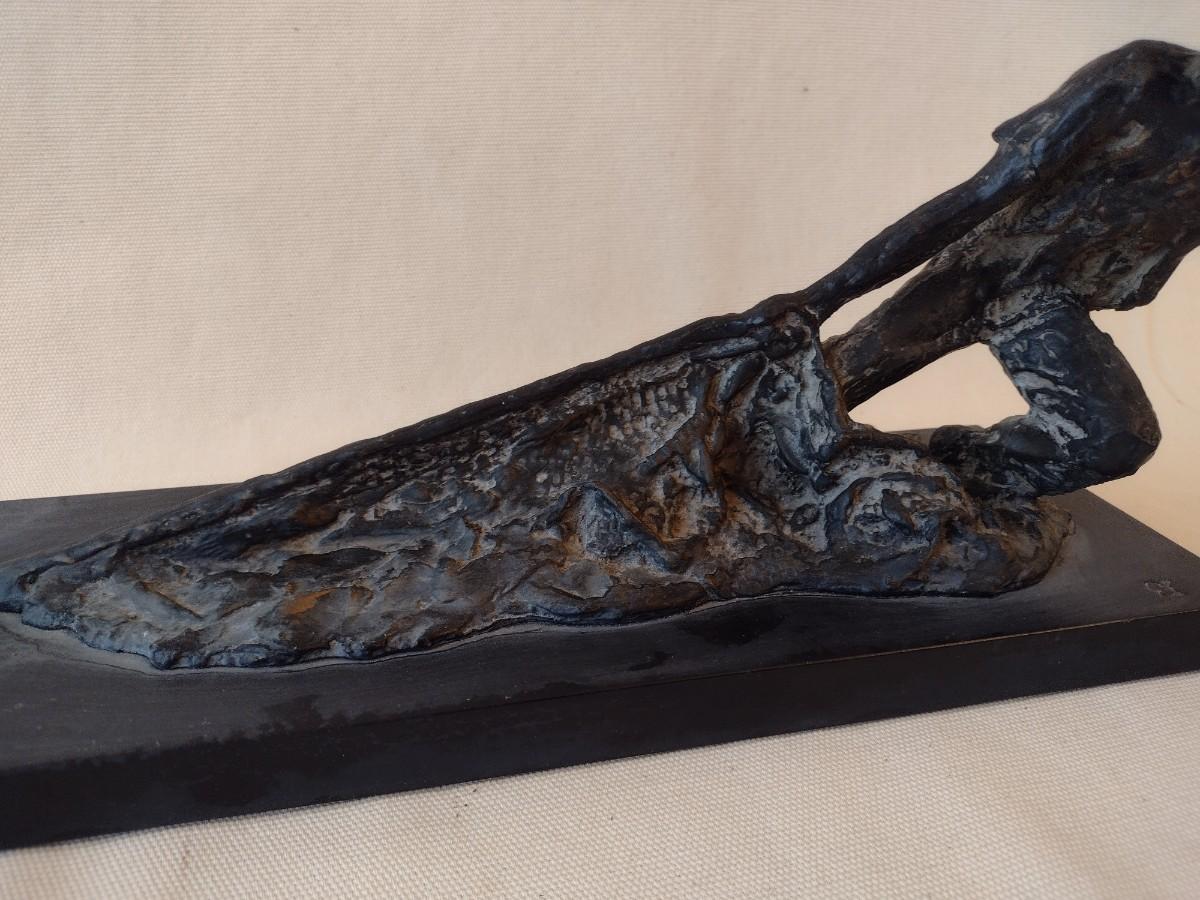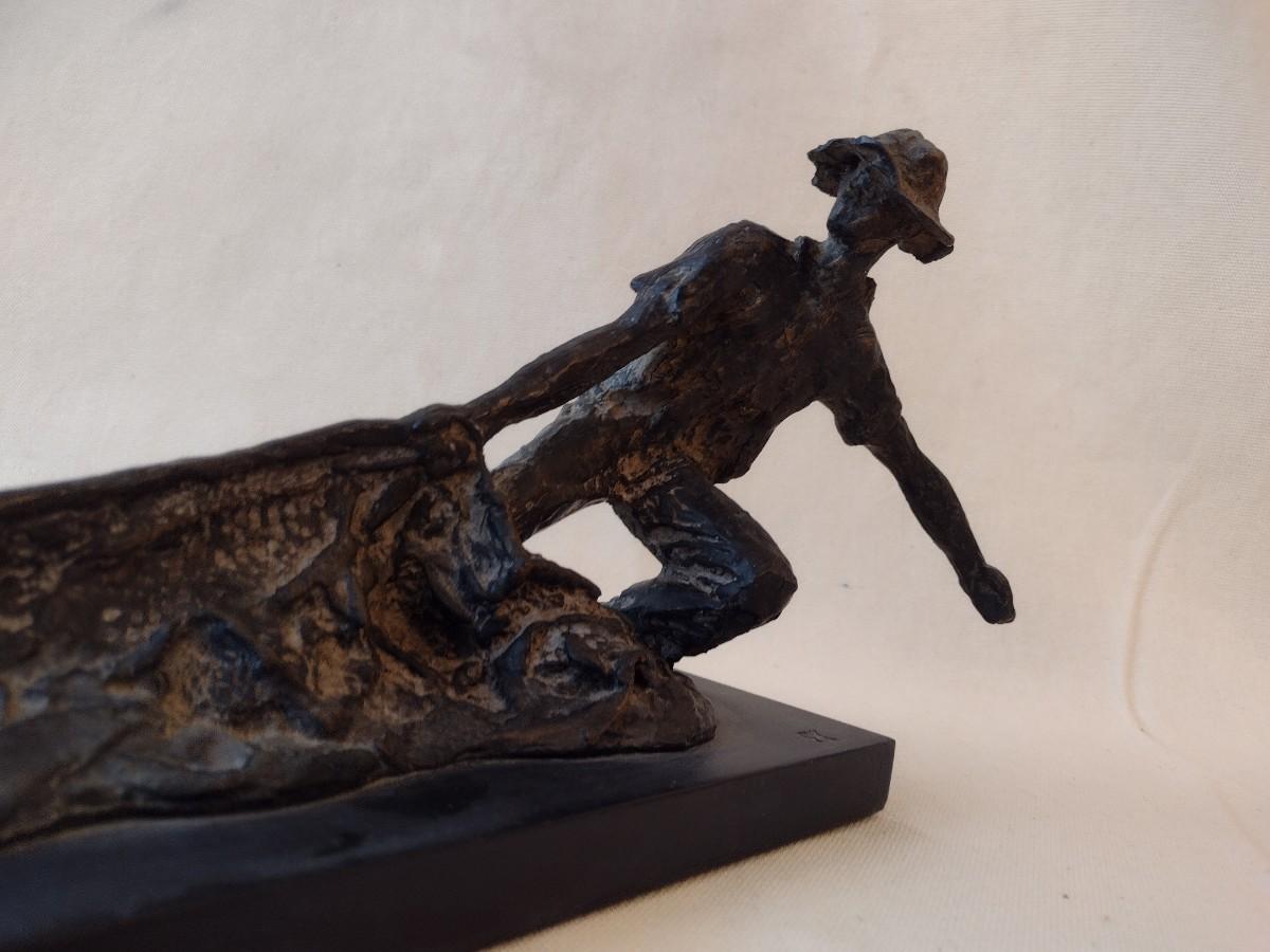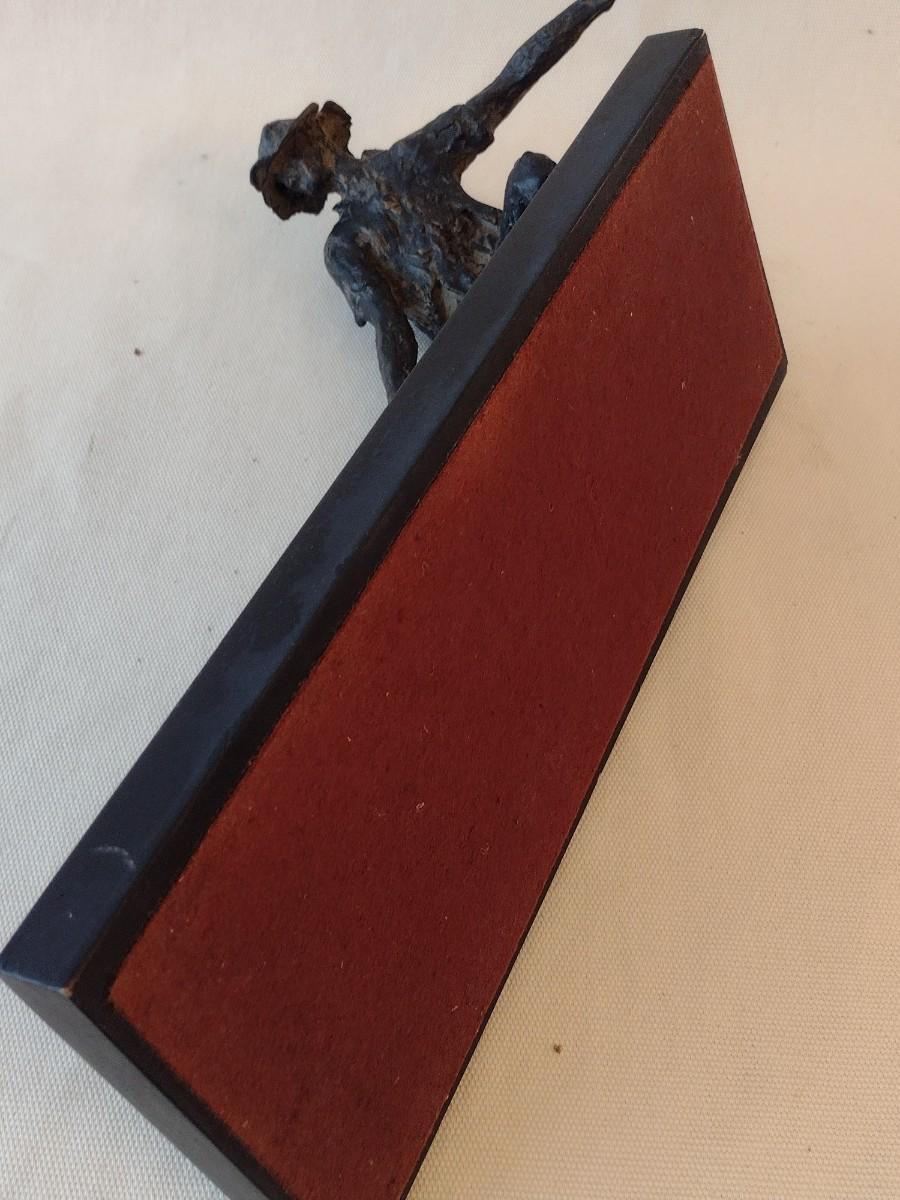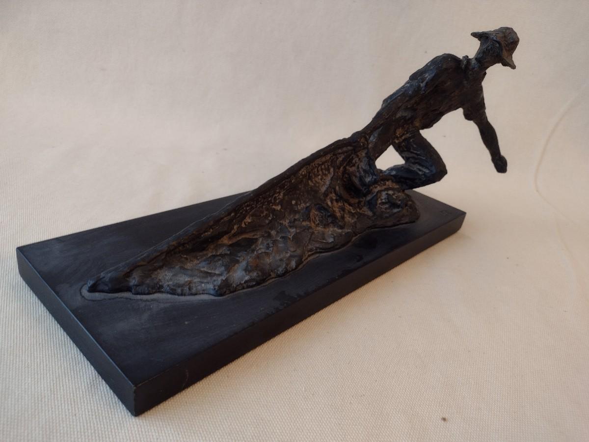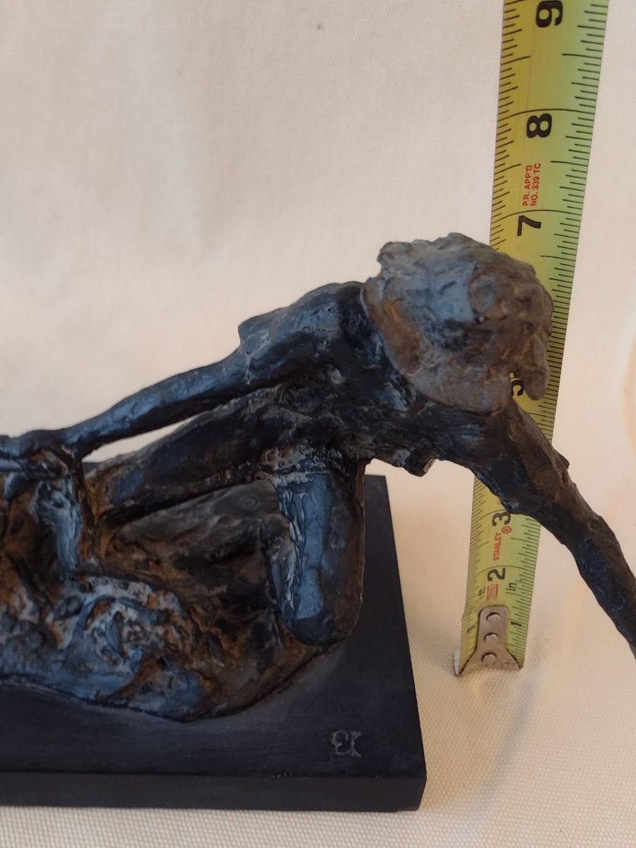 Wood Carved Fisherman with Cast Net Statuette on Base