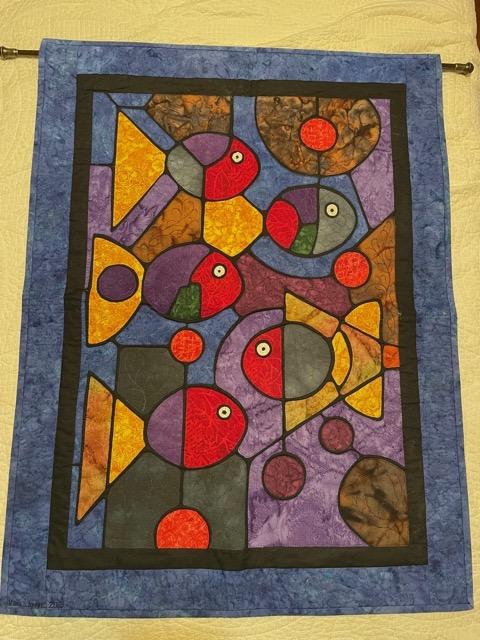 Brightly colored Fishes Quilt Wall Hanging. Comes with hanging rod 24"W x 31.75"H
