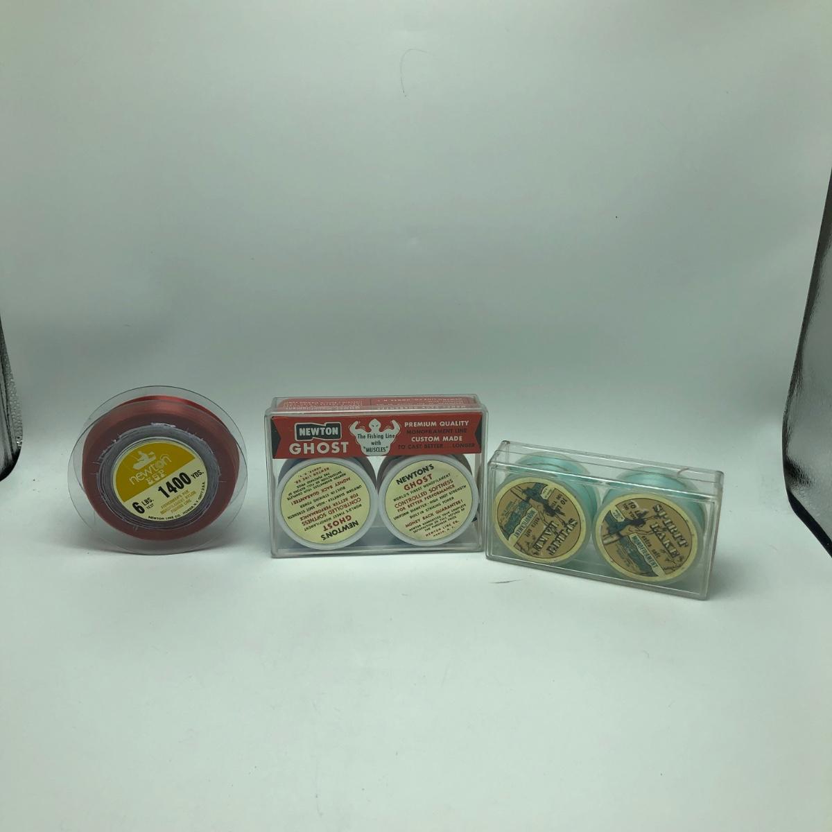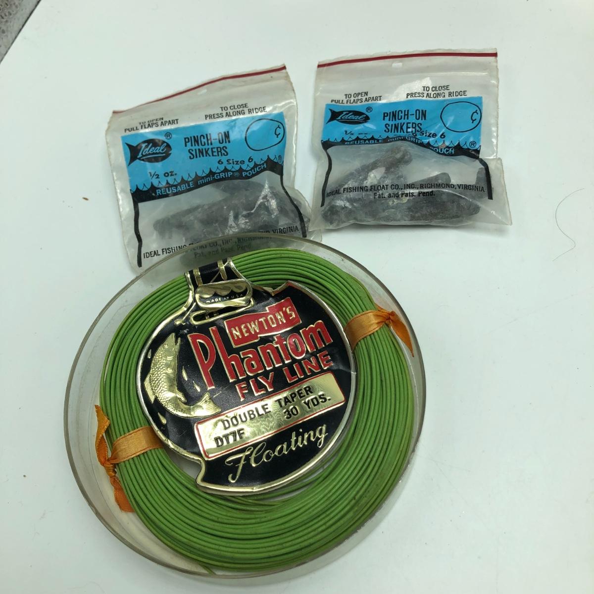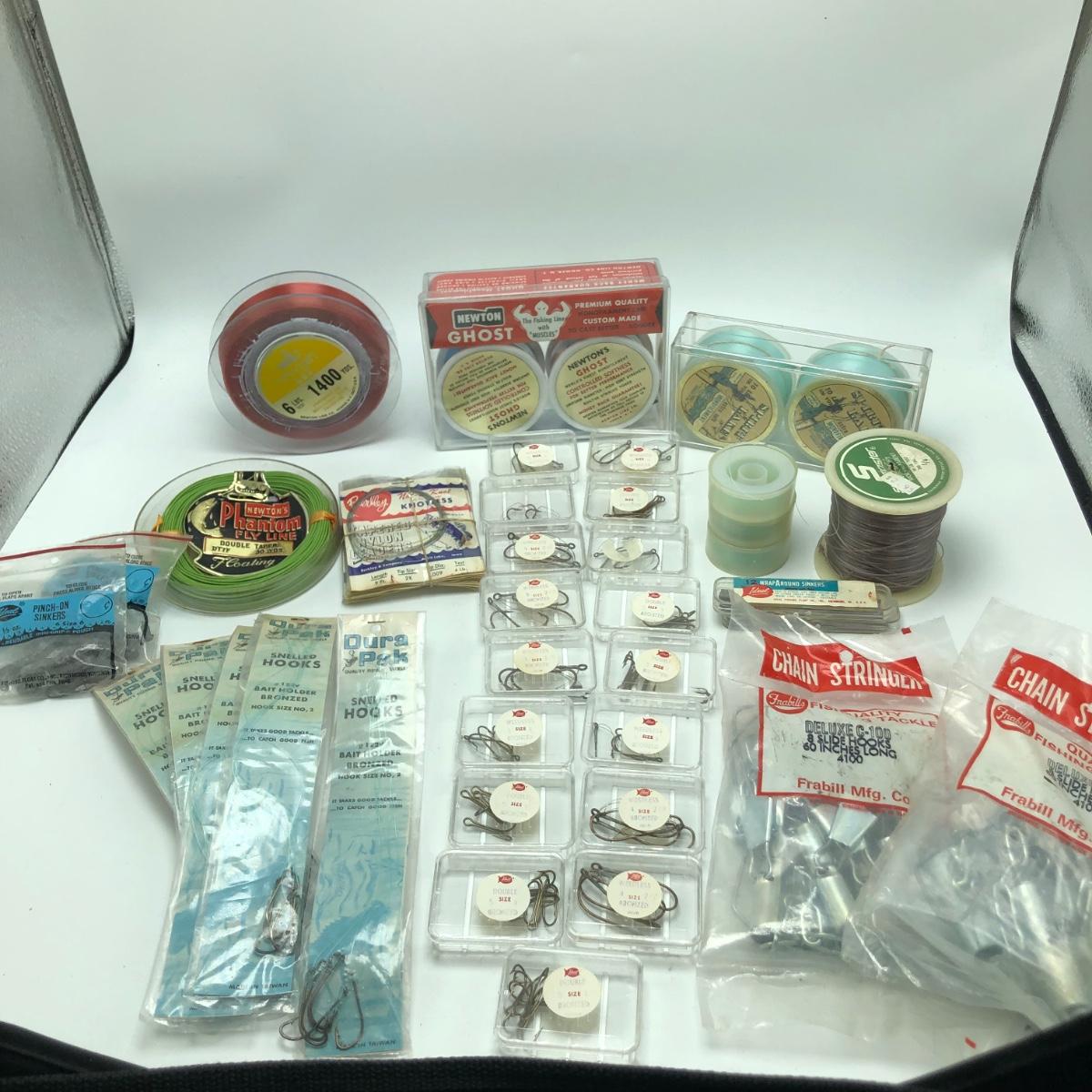 Lot includes Phantom fly line Ghosts, Spirit Lake, Spinmaster and Newton monofilament, two chain stringers, wrap around sinkers and seventeen packs of Ideal hooks.
