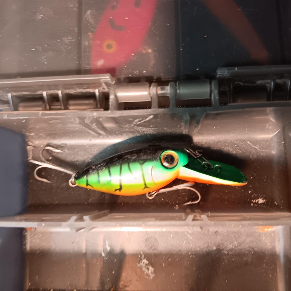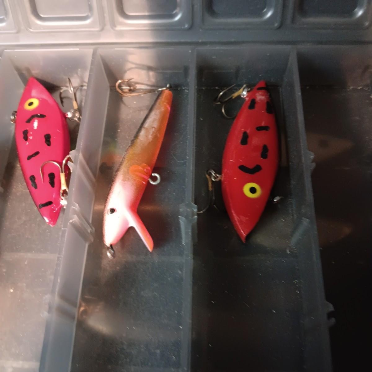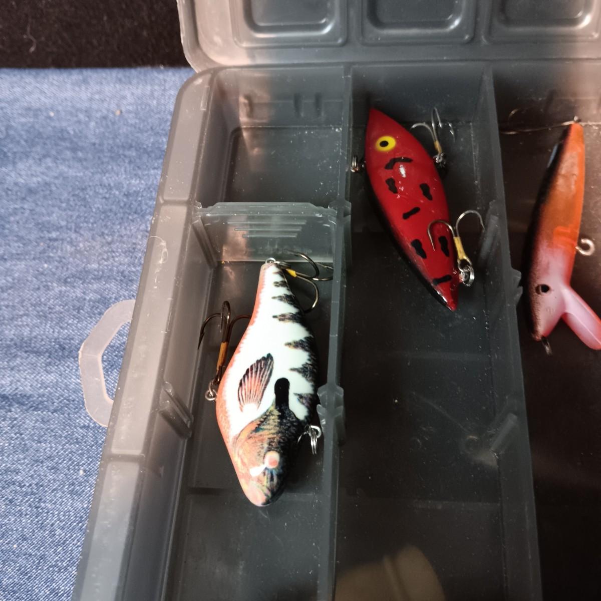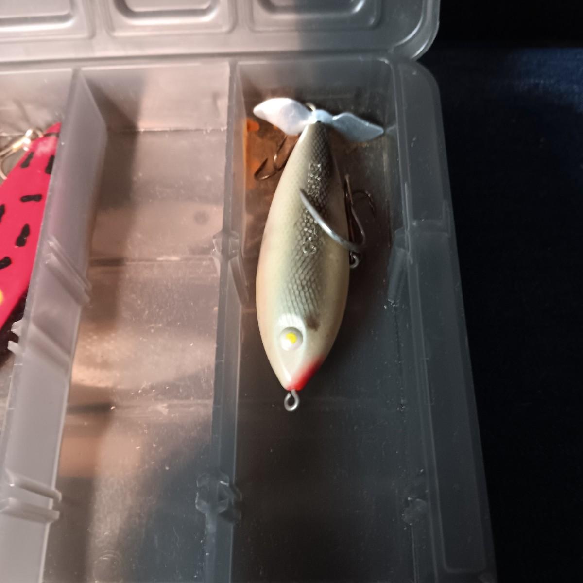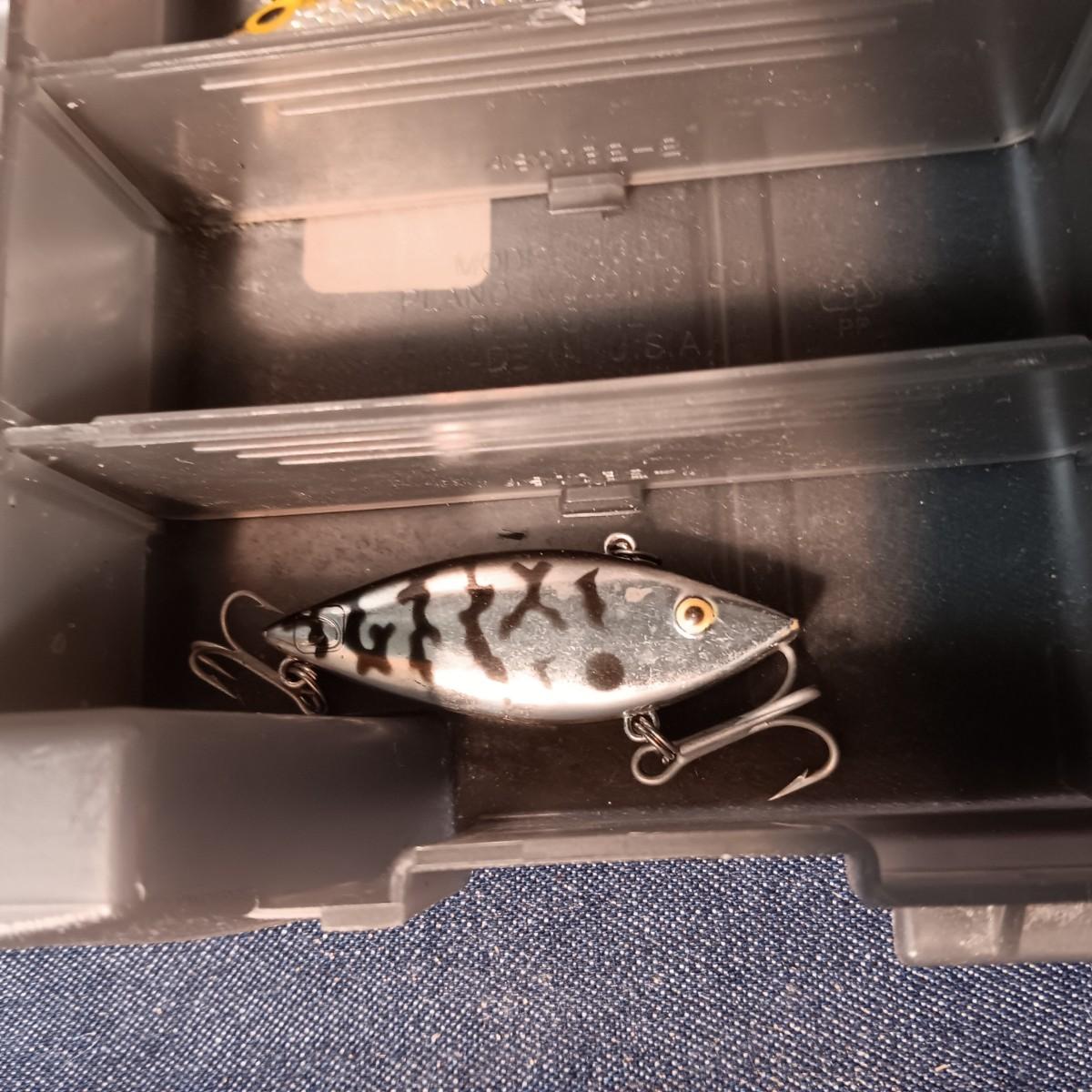 FISHING LURES AND A DOUBLE COMPARTMENT PLANO ORGANIZER