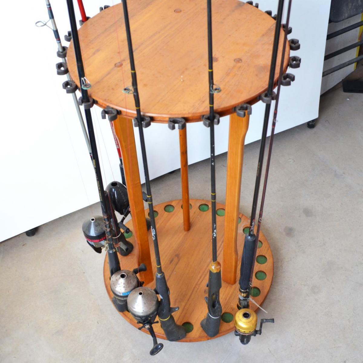 Fishing Pole Holder with 6 Rods and 5 Reels