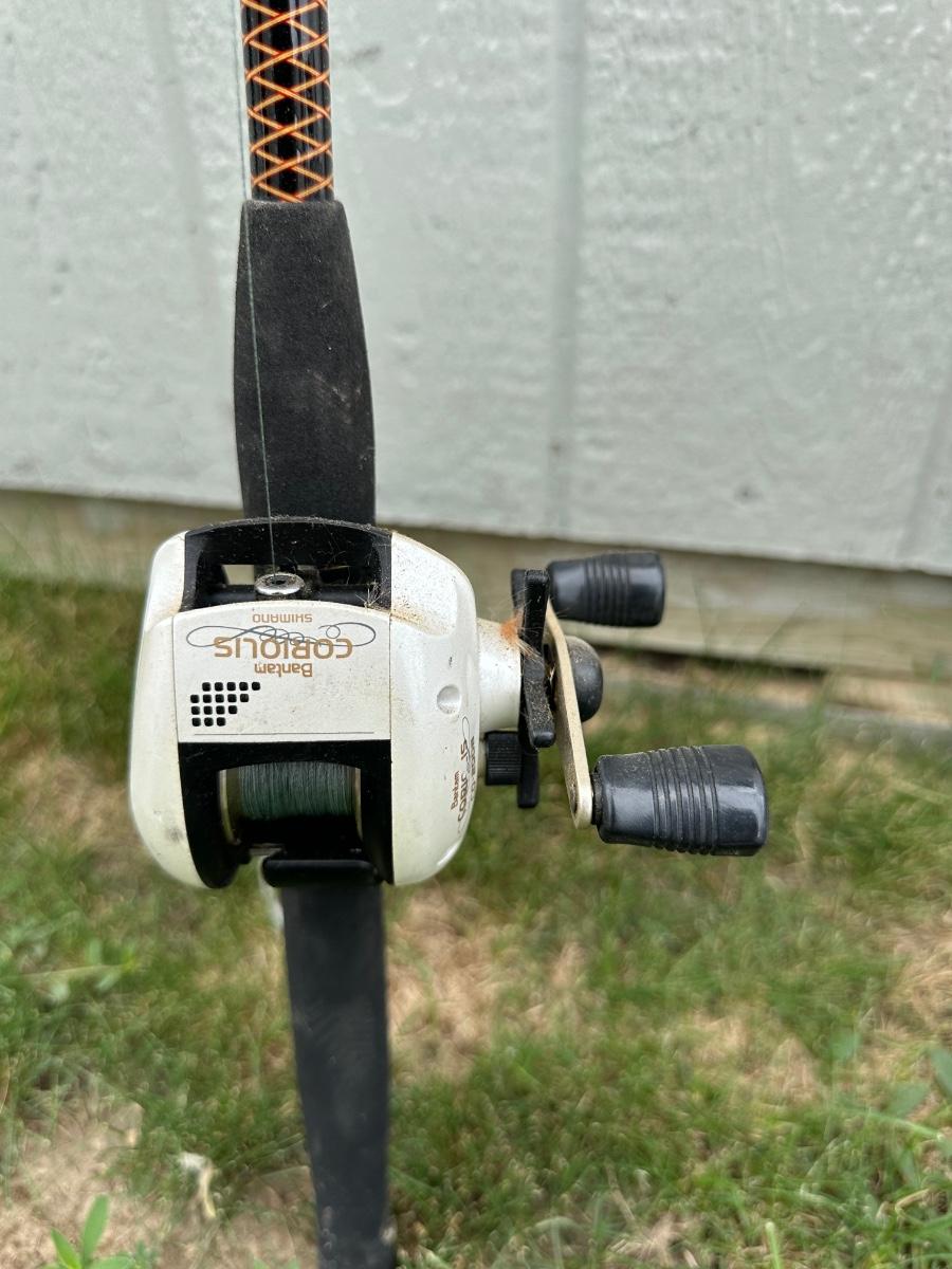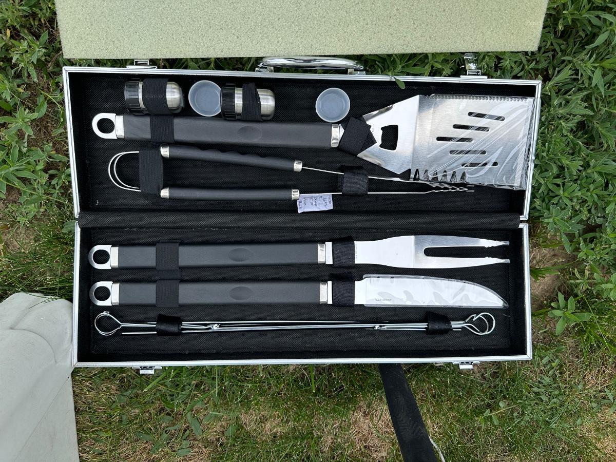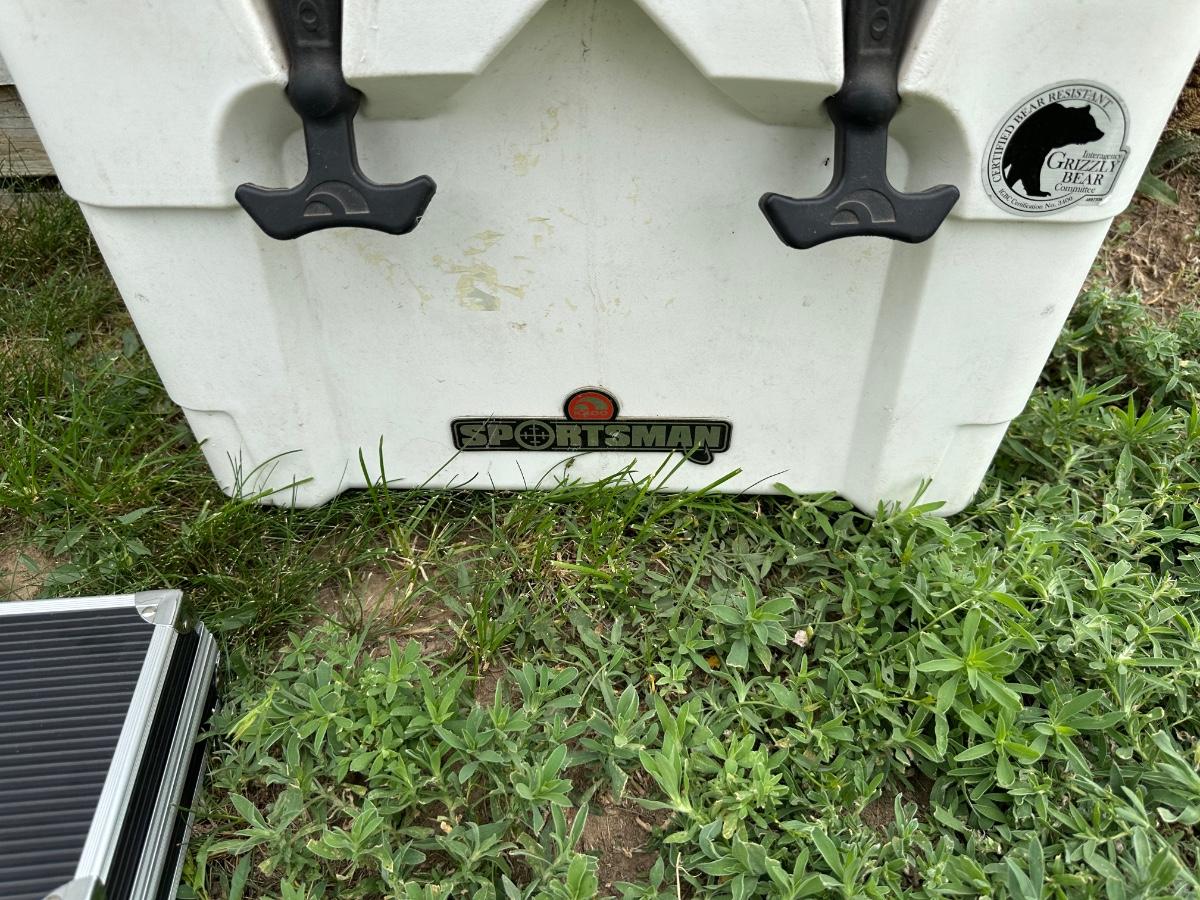 FISHING POLE WITH REEL, SPORTSMAN COOLER AND NEW BBQ UTENSILS