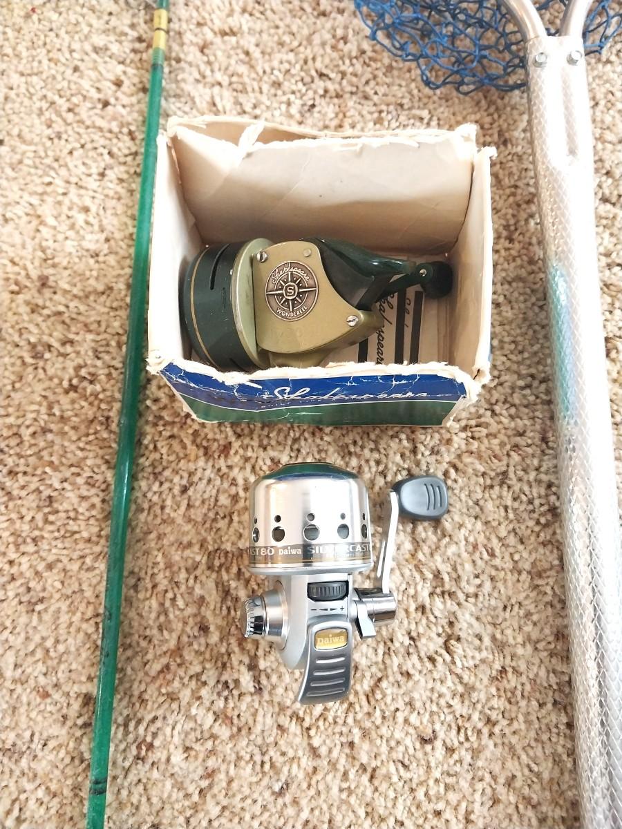 FISHING POLE-NET AND SHAKESPEARE REELS