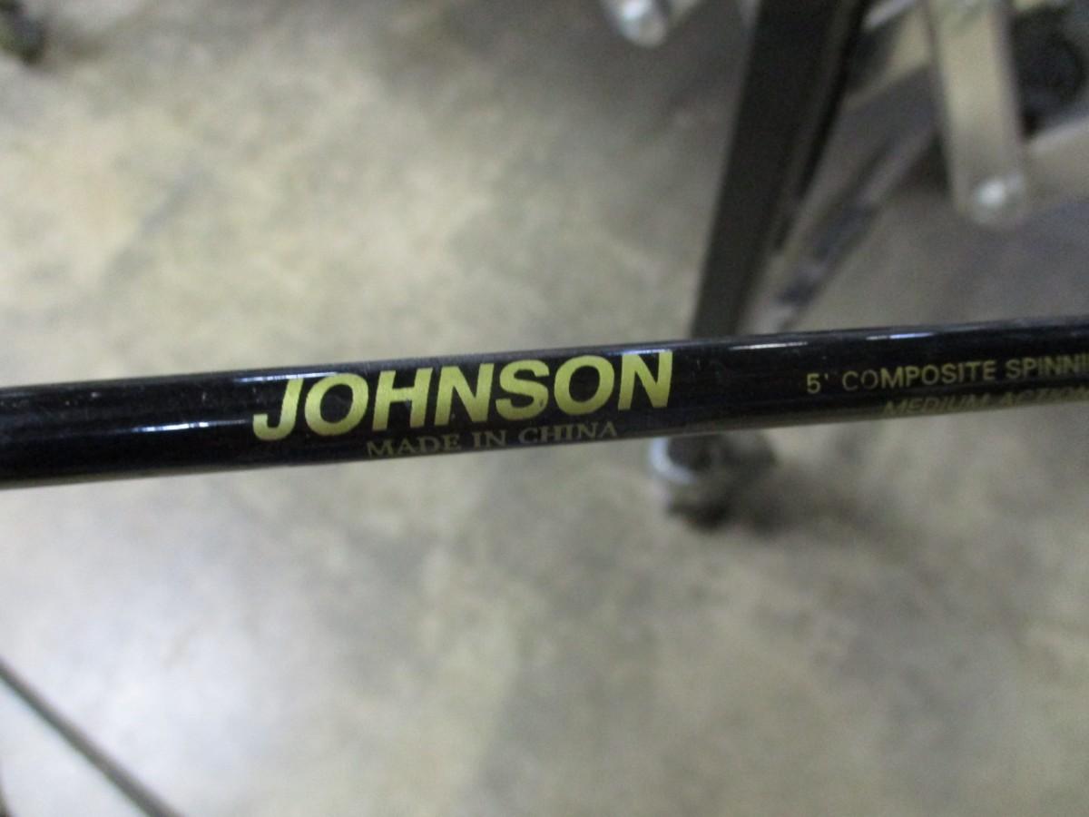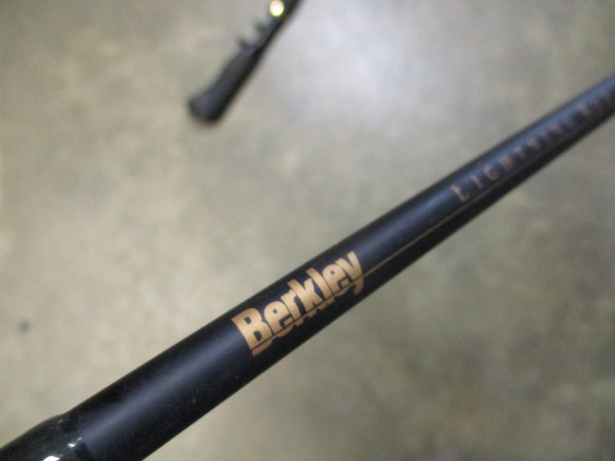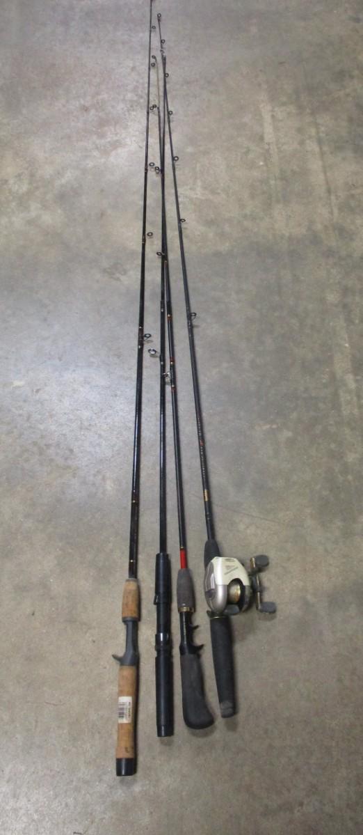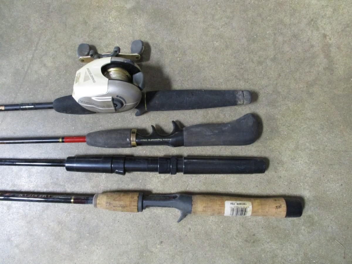Set of Four Fishing Poles includes Zebco, Quantum, Berkley, and Johnson