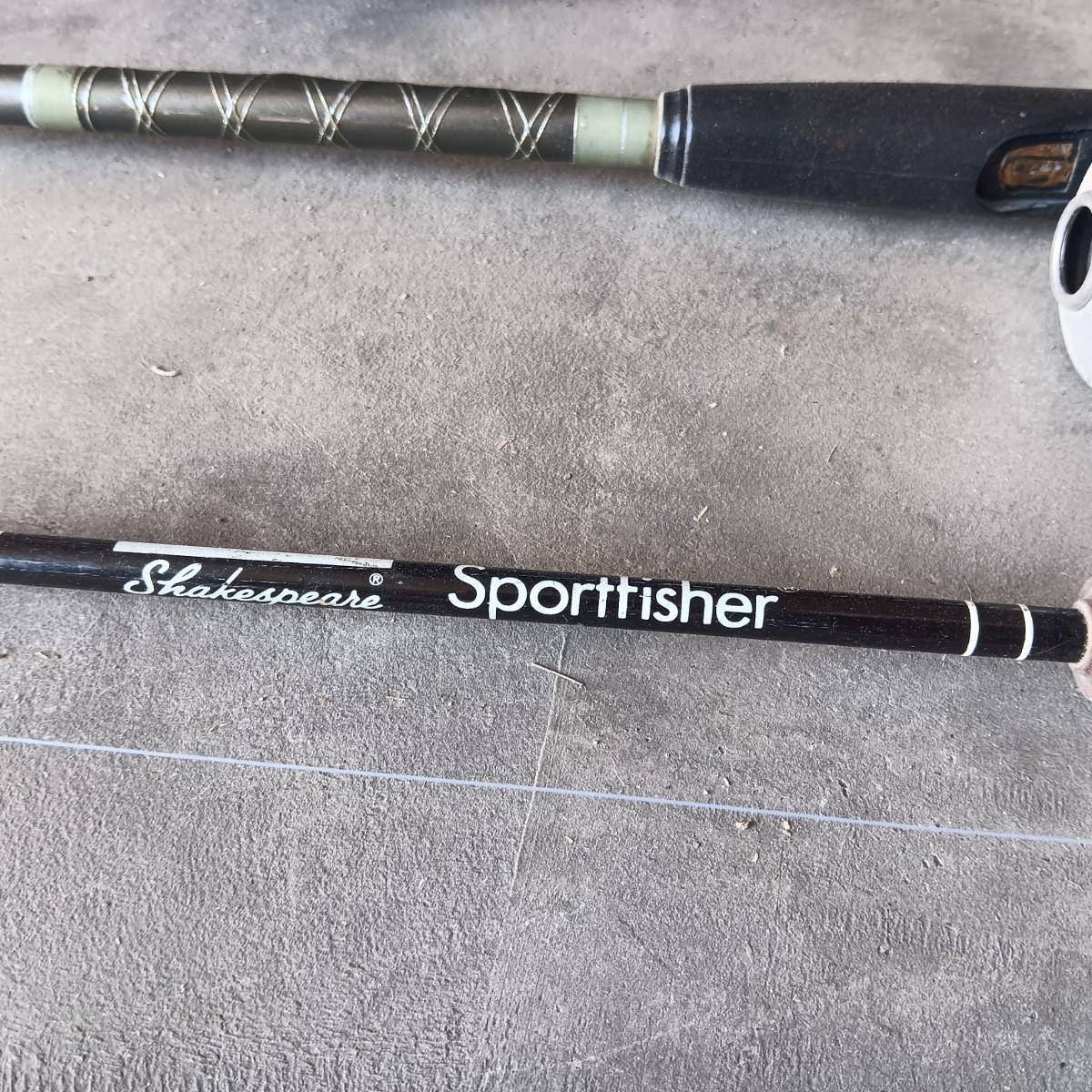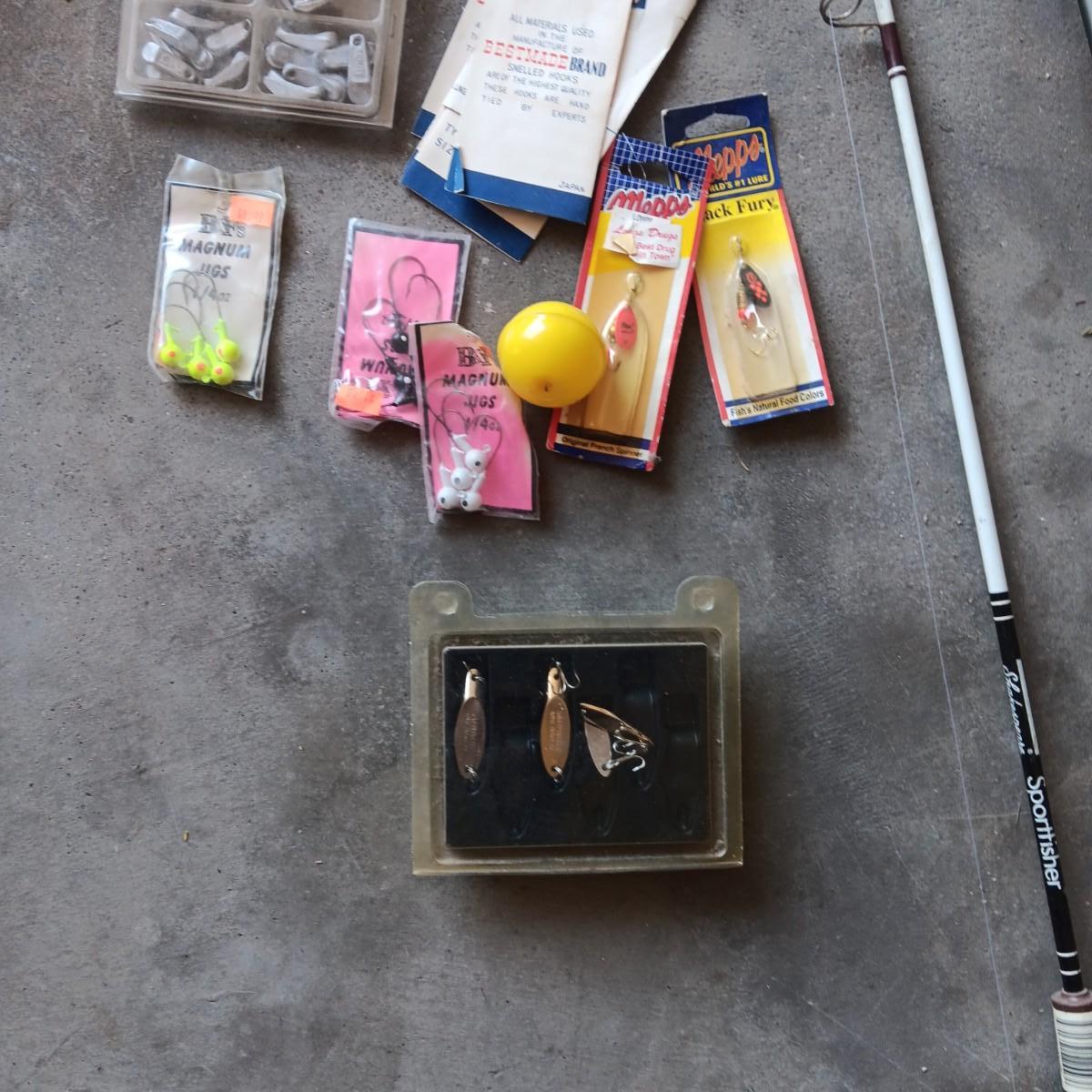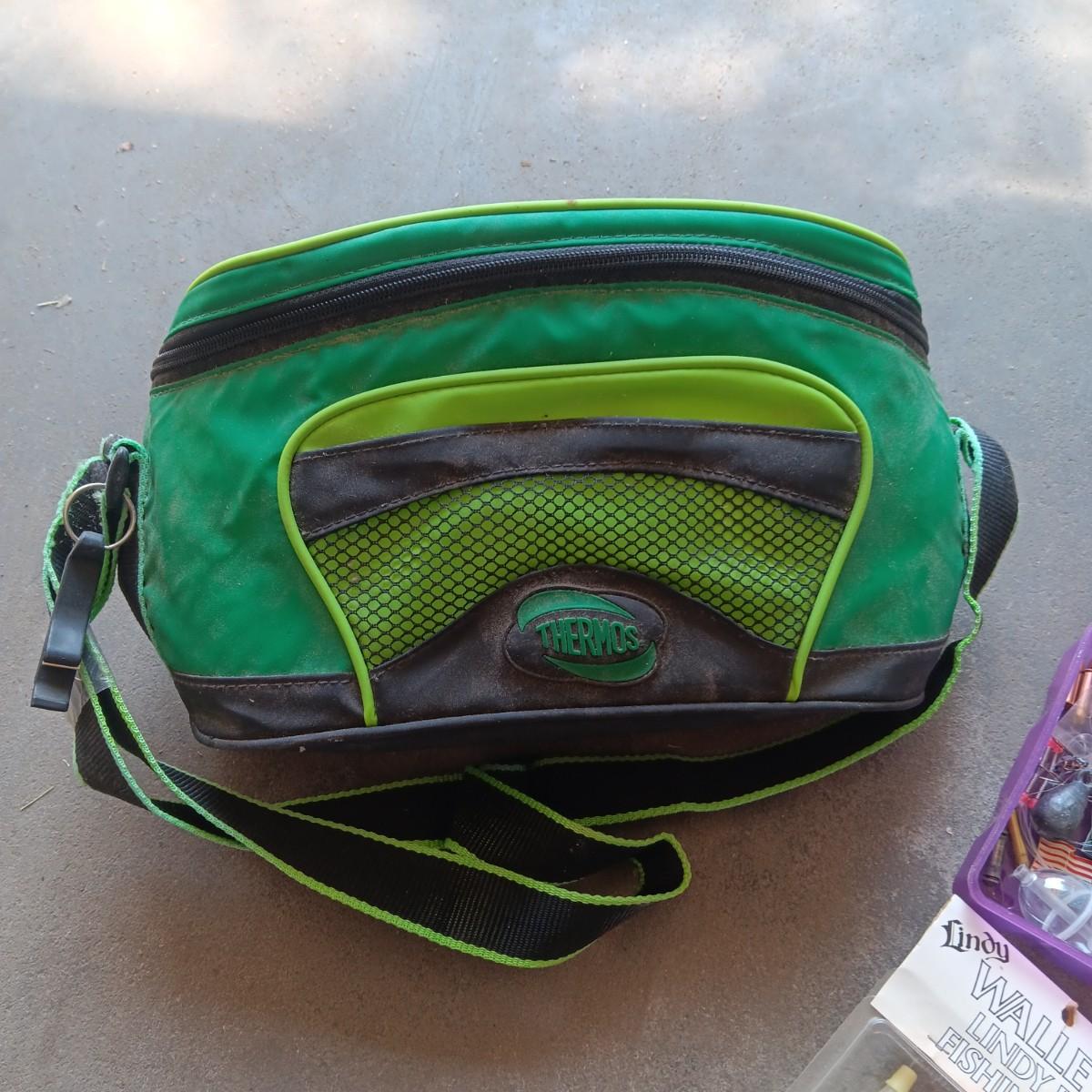 FISHING POLES W/REELS, TACKLE AND THERMOS COOLER