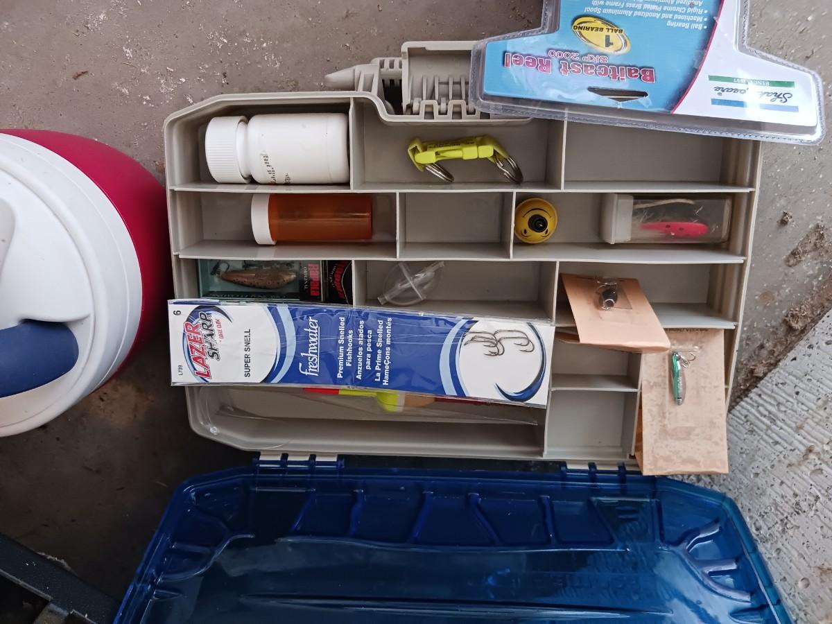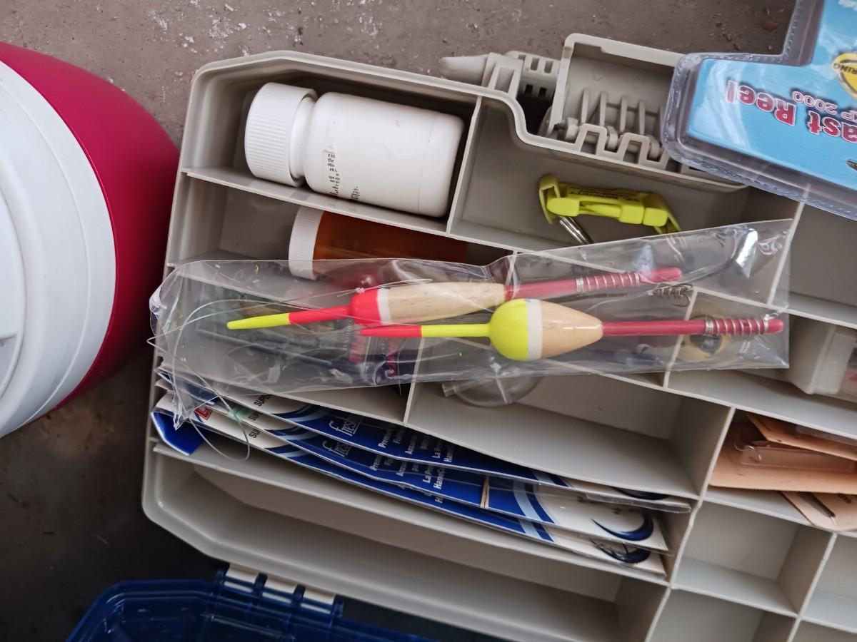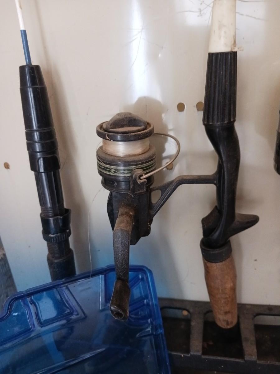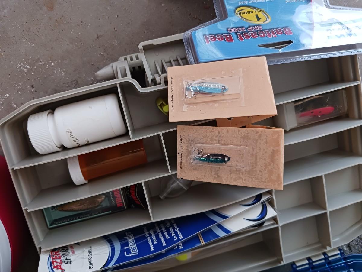 FISHING POLES W/REELS, TACKLE AND TACKLE BOX
