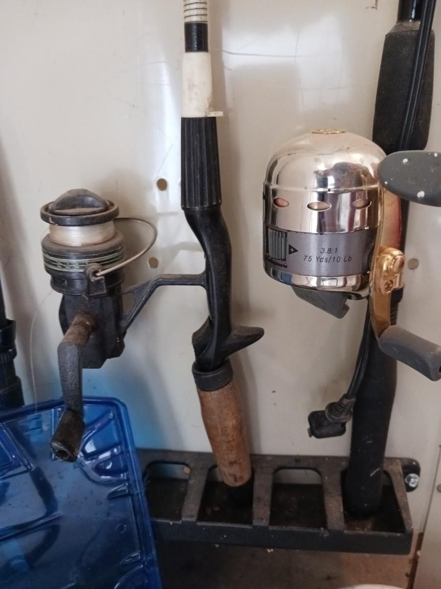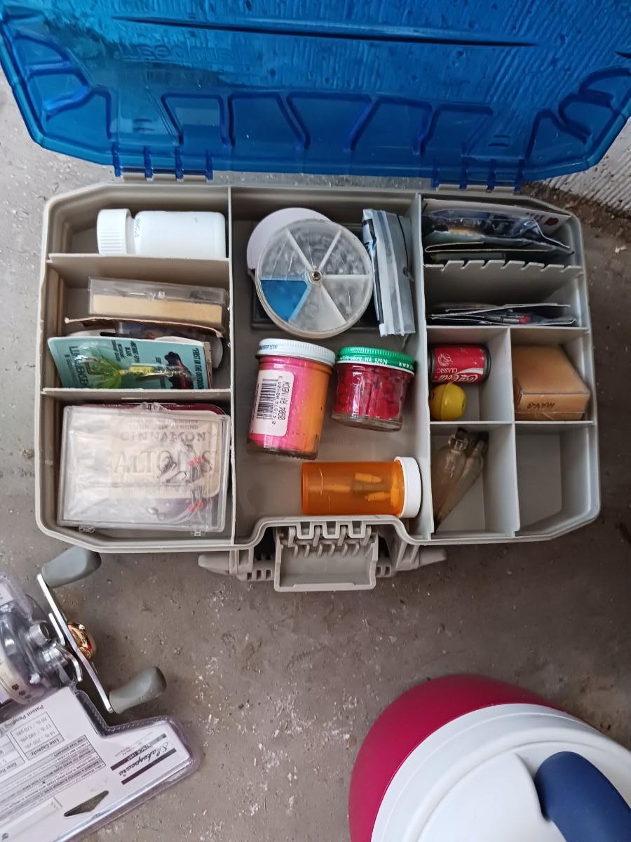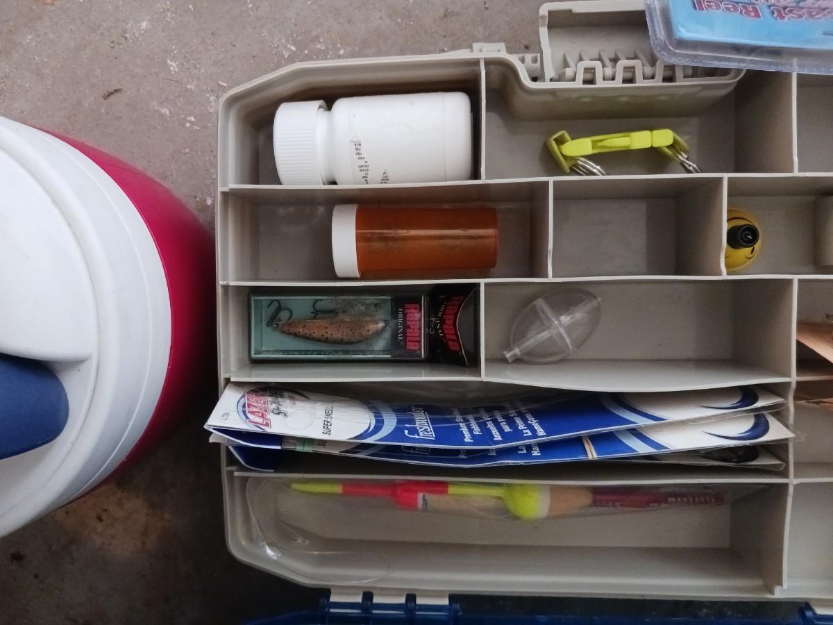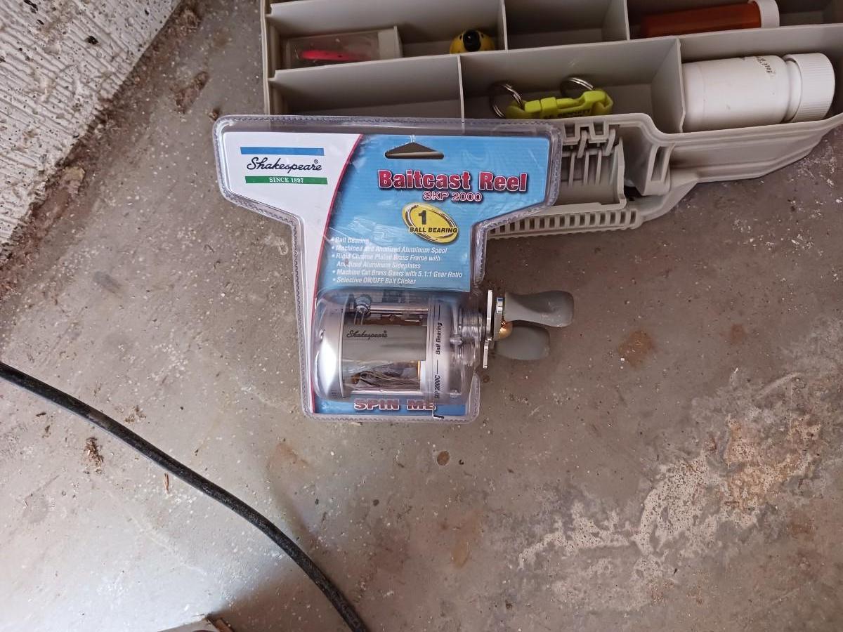 FISHING POLES W/REELS, TACKLE AND TACKLE BOX