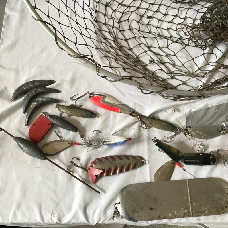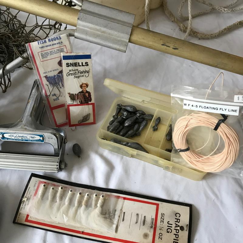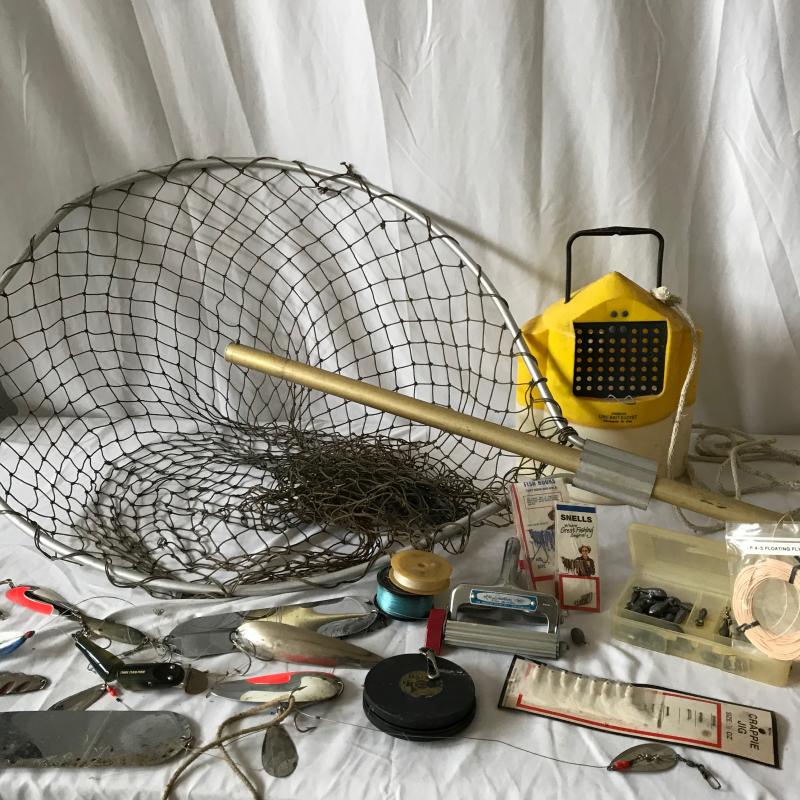 Lot includes large fishing net, live bait bucket, weights, hooks, and much more. See pics. No shipping available. Local pickup only in Hendersonville, NC.