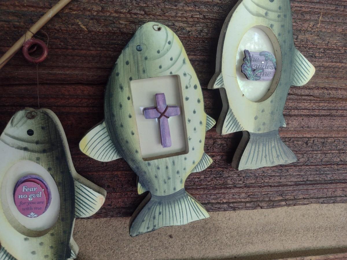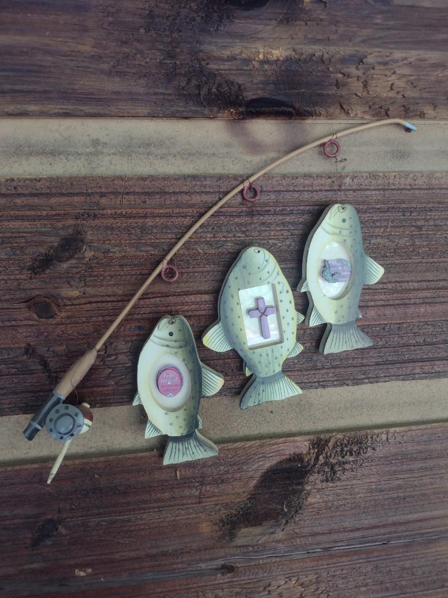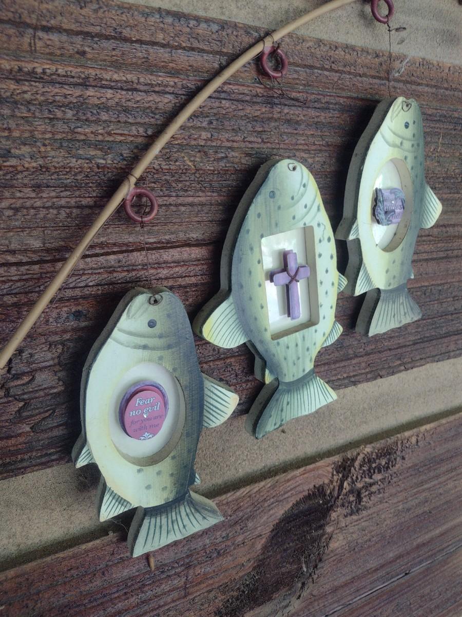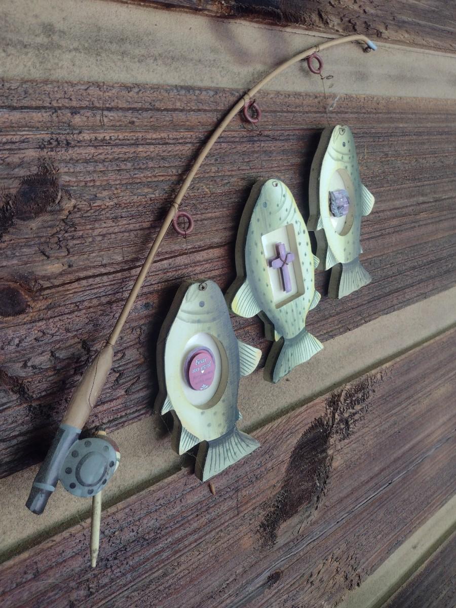 Fishing Themed Wall Decor Metal Fishing Rod with Wood Fish Cutouts