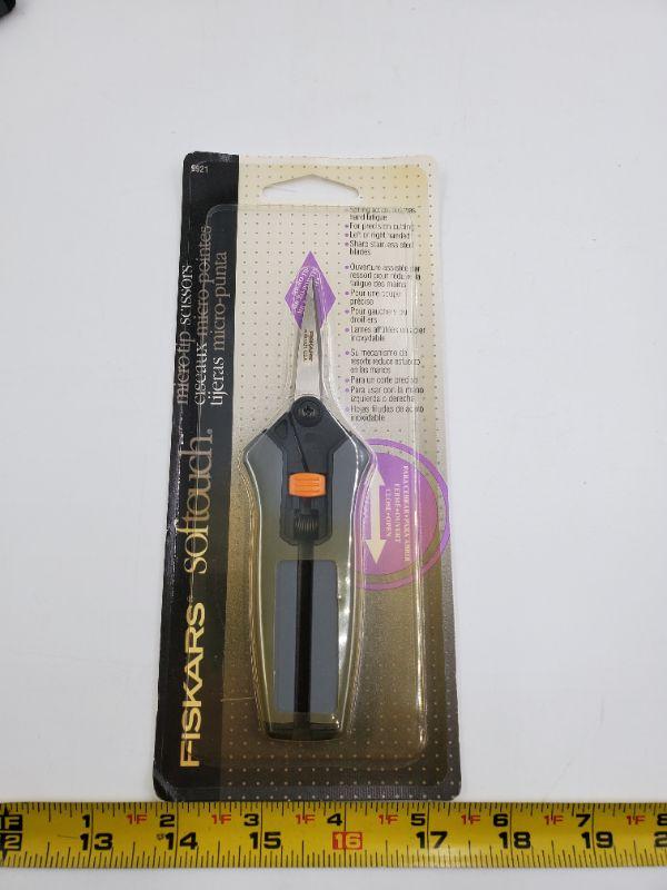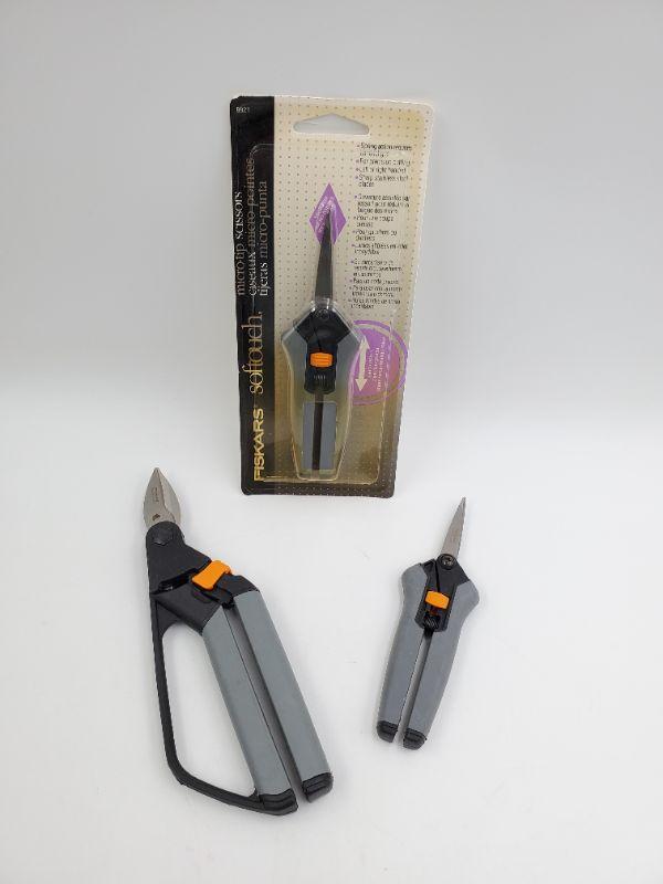 2 gently used soft touch Fiskar crafting scissors and 1 new in package