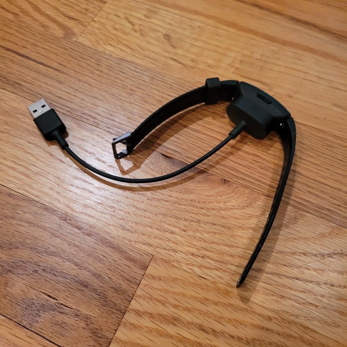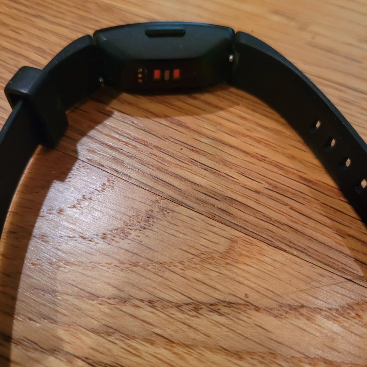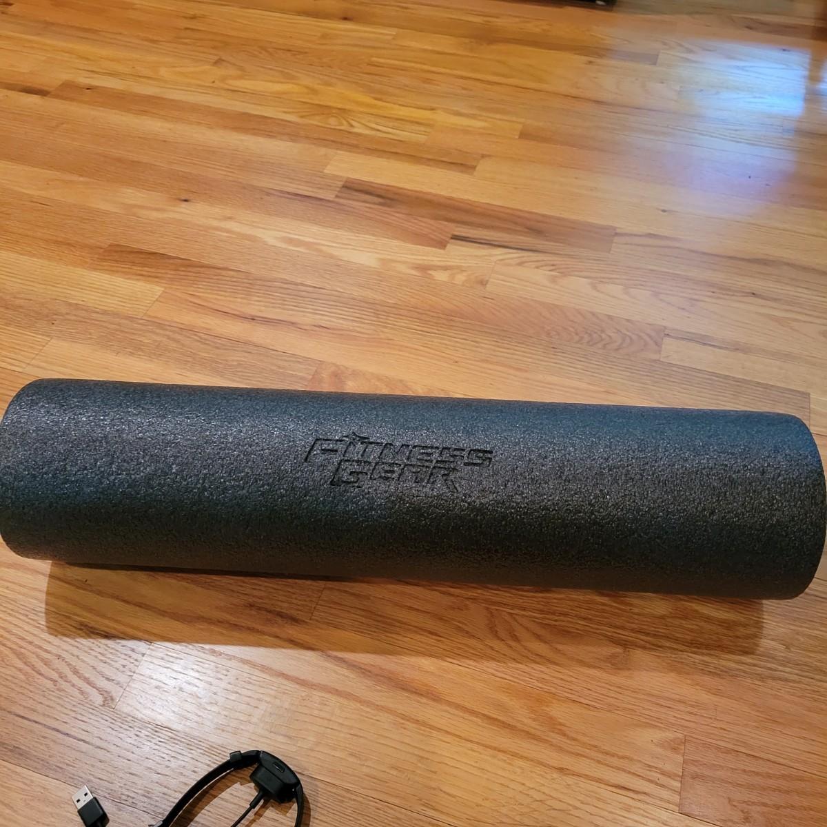 A lot of fitness related items that includes a FitBit watch that powered on and includes a magnetic charger. Also included is a pair of soft ankle/wrist weights and a foam back roller that measures approximately 6"D x 24"H. Shipping available.