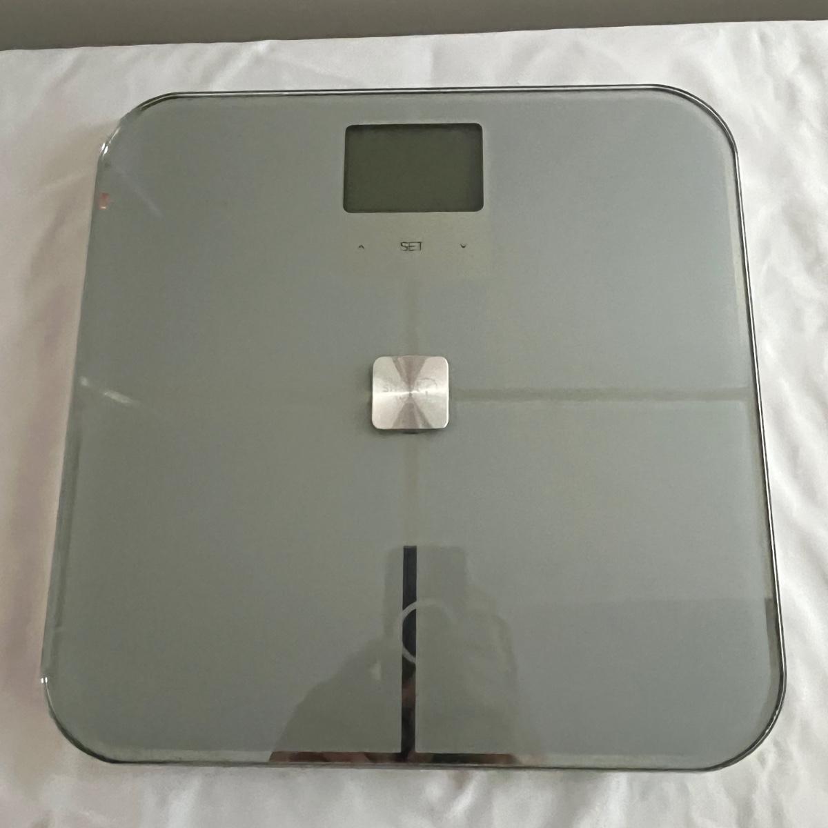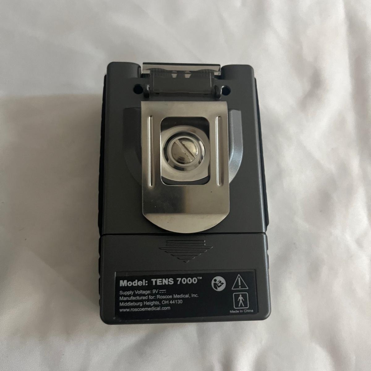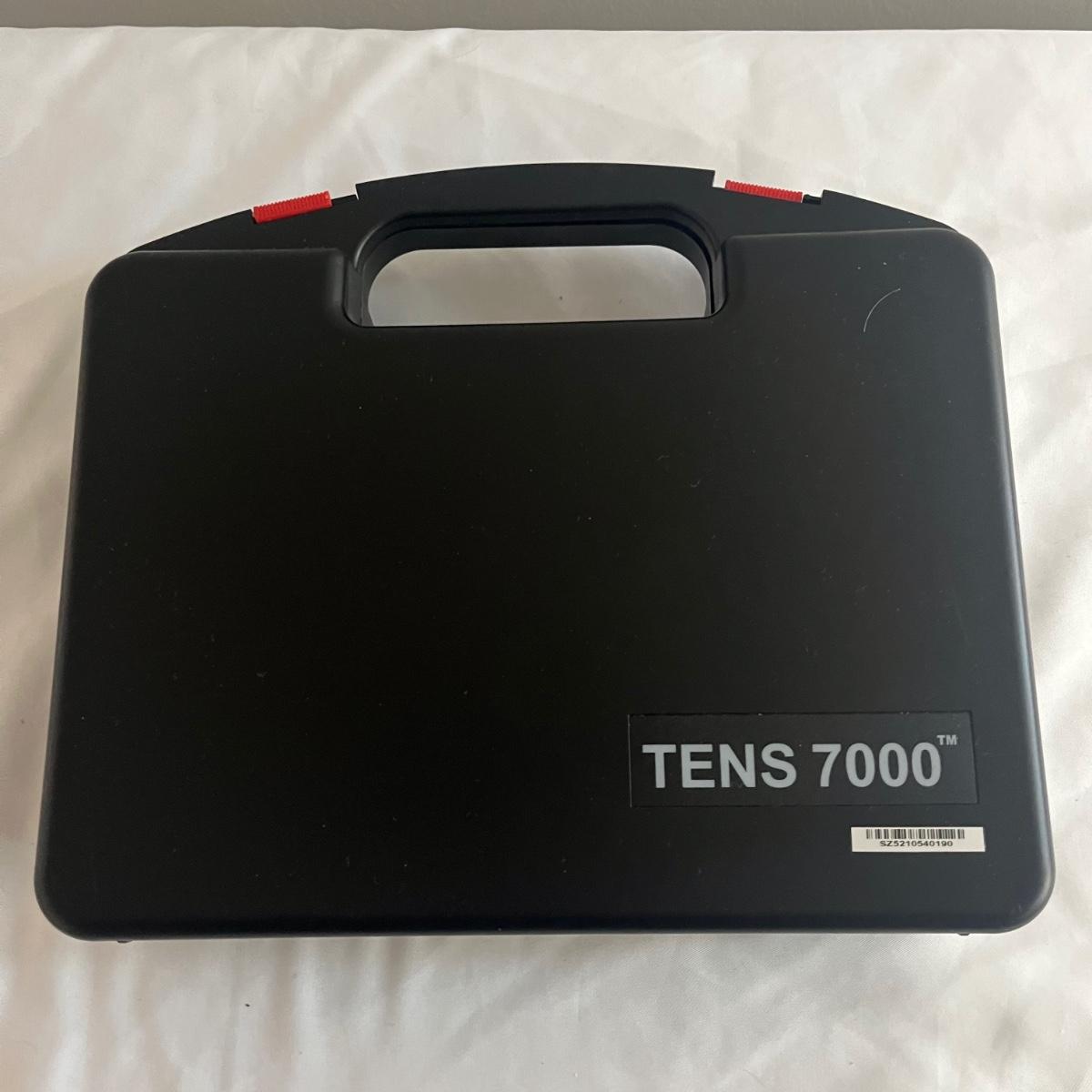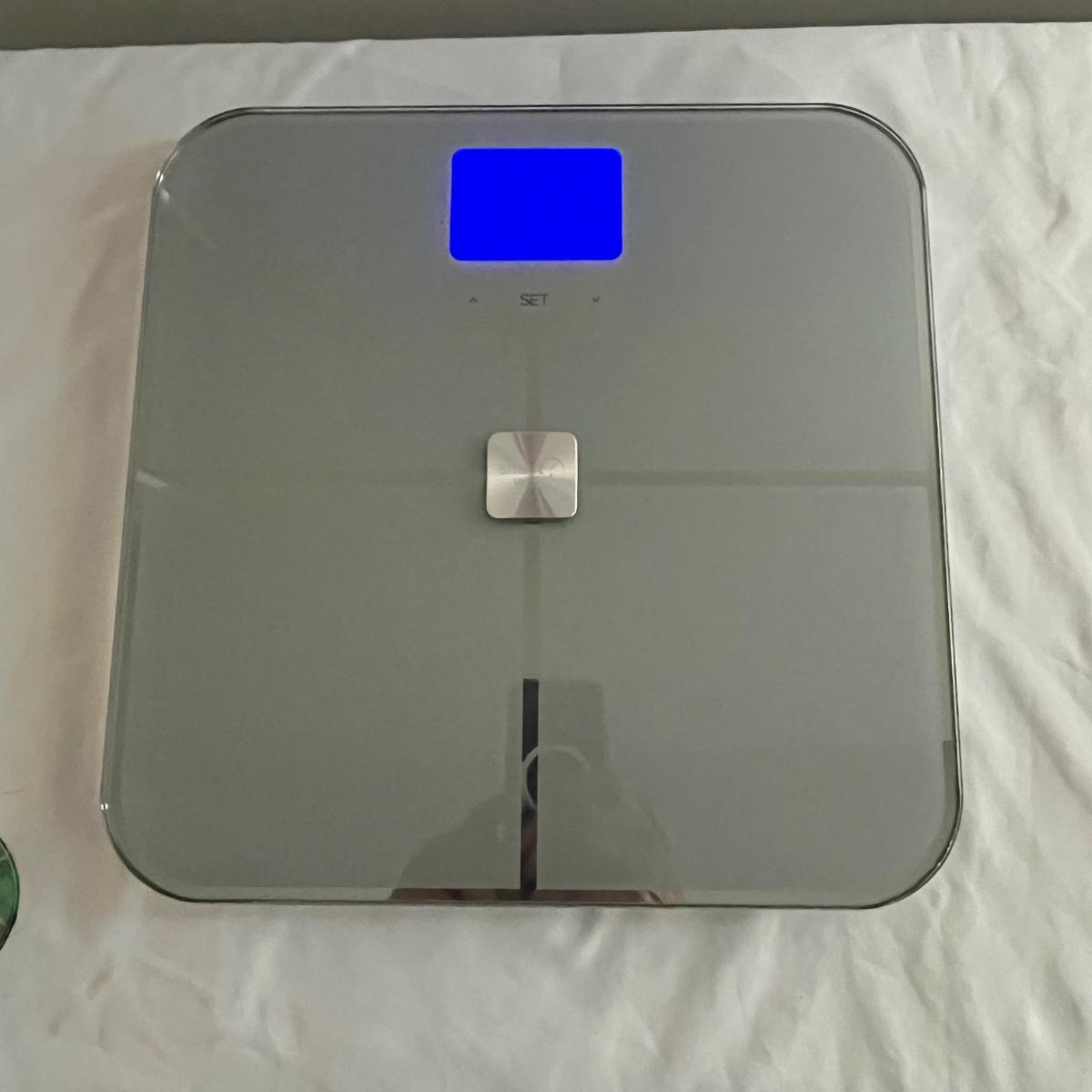 Lot includes a Smart Weigh scale, Tens 7000 unit, two 2 lb weights, Fitbit model # FB507 smartwatch and a Fitbit. All electronics powered on when tested.