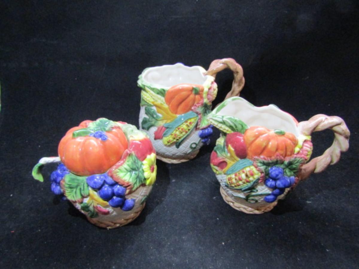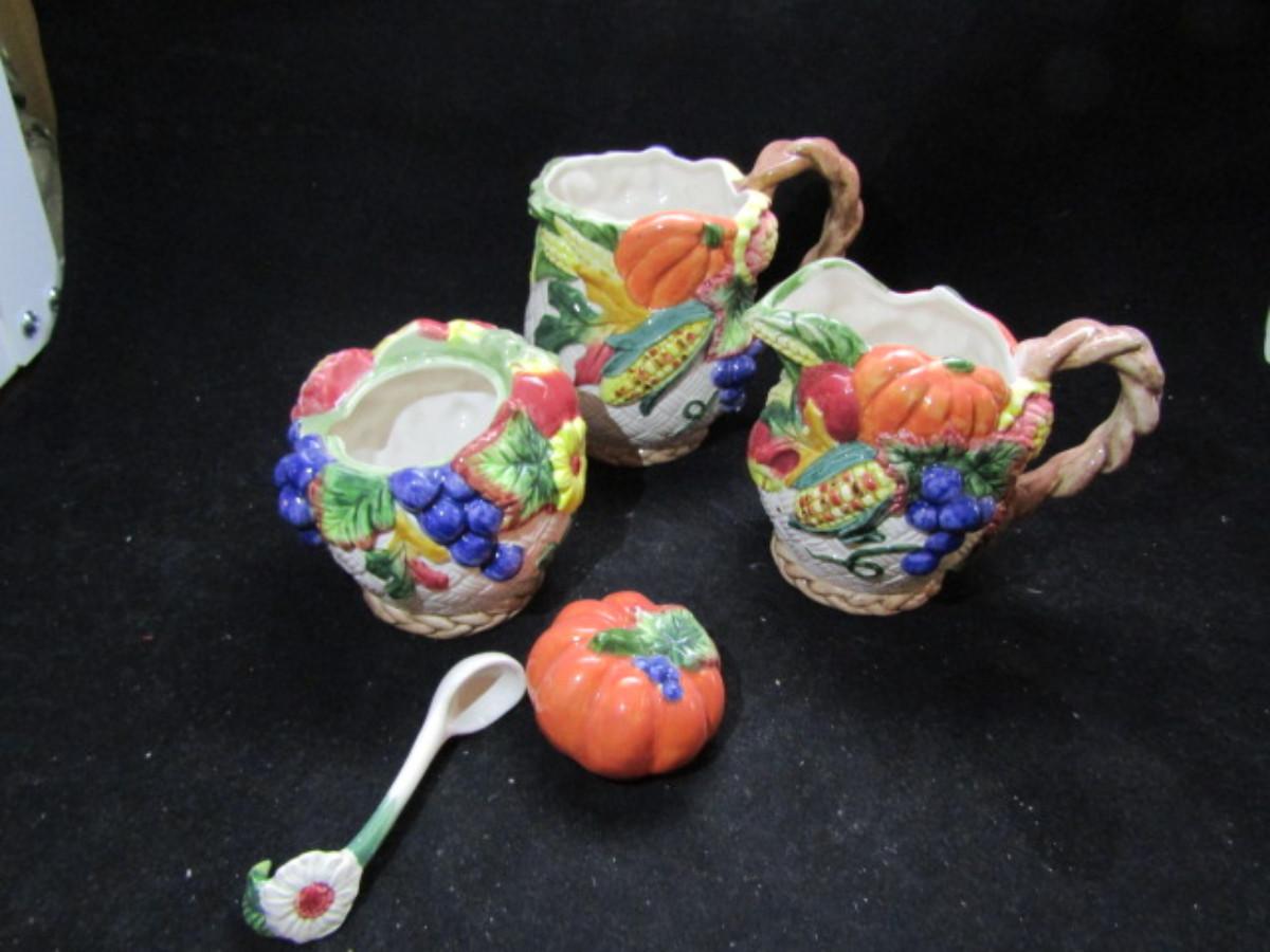 Fitz and Floyd Ceramic Mug, Creamer, and Covered Sugar Bowl with Spoon (#450)