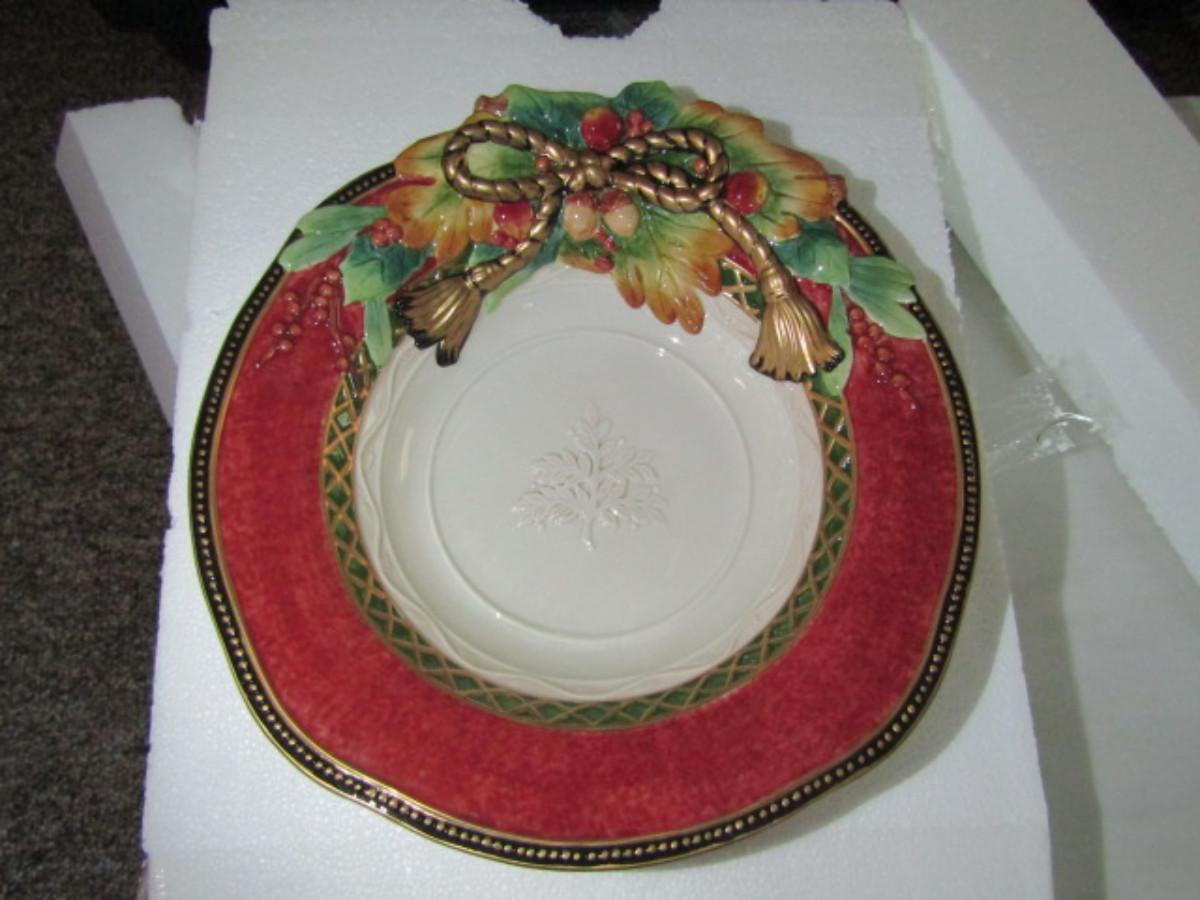 Fitz and Floyd Ceramic Plate- 'Holiday Solstice'- Approx 12 1/2" in Diameter (#378)