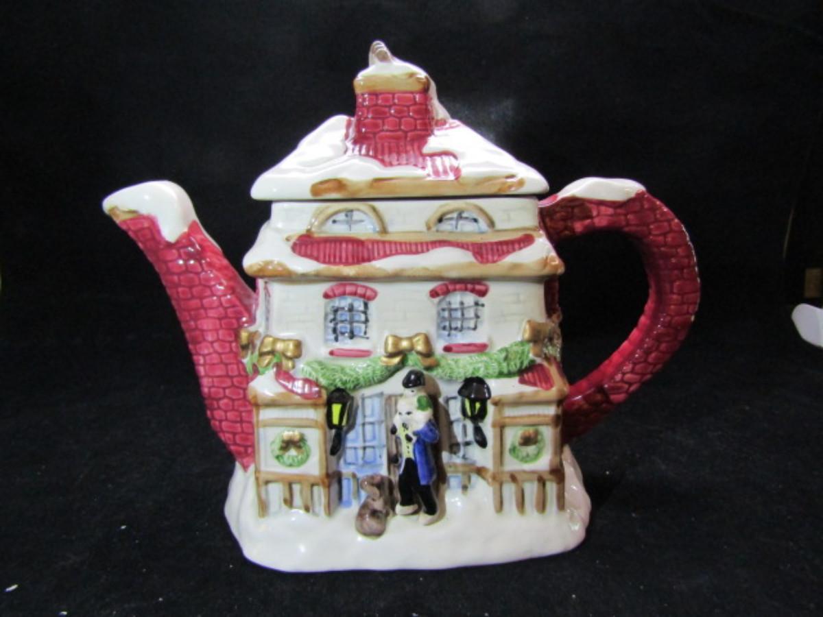 Fitz and Floyd Ceramic Teapot- Winter Cottage Design (#309)