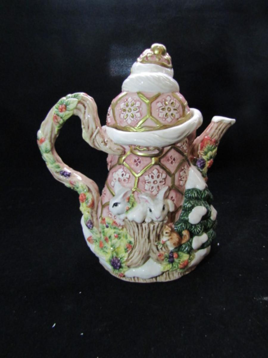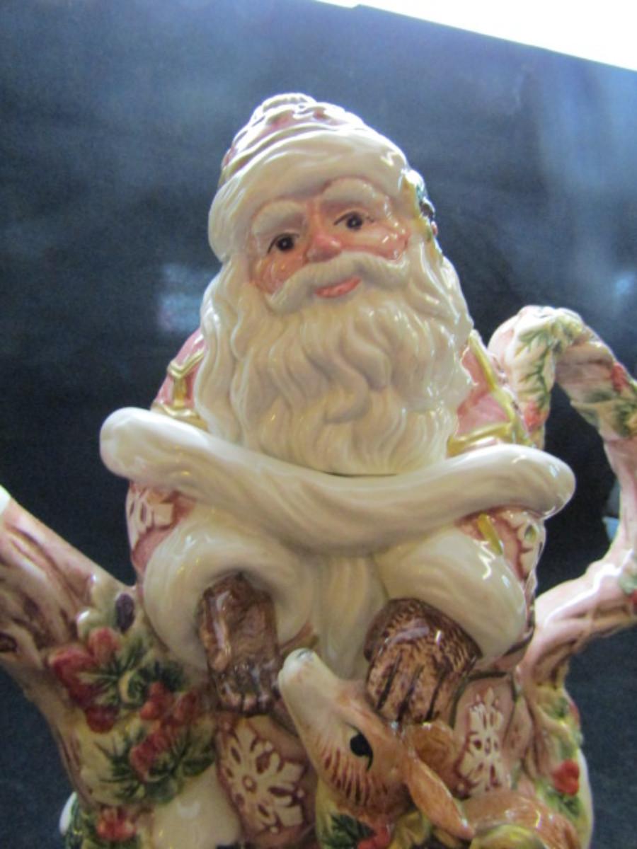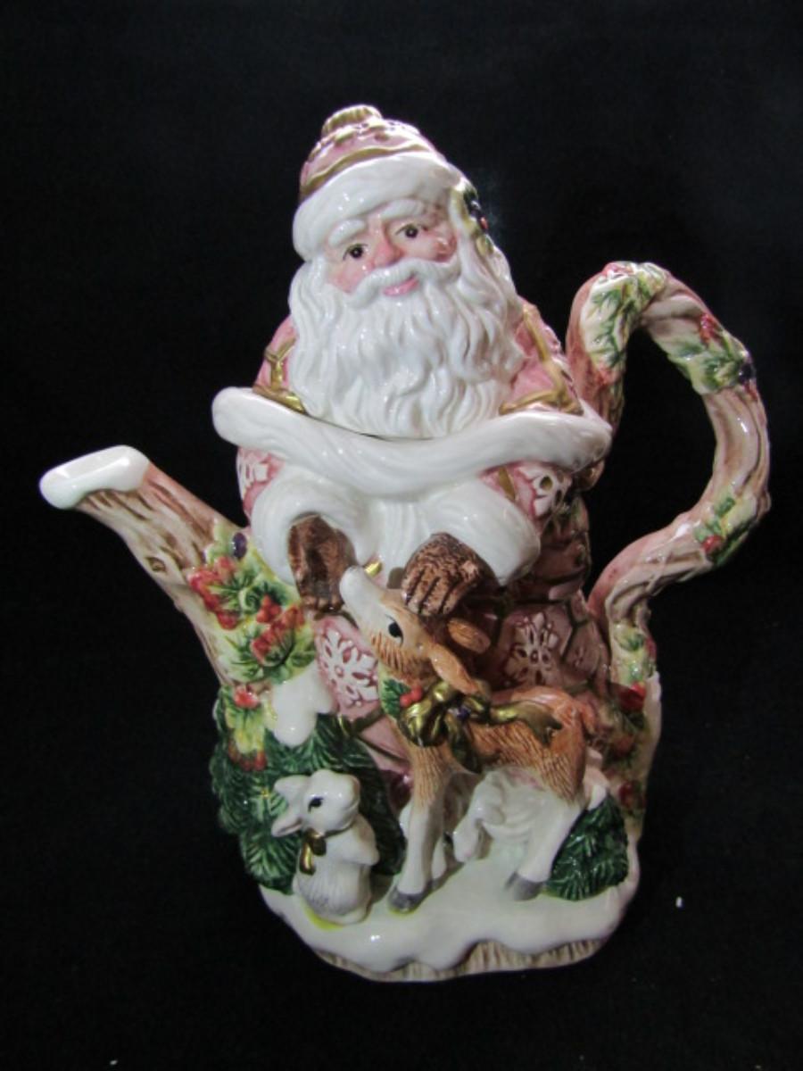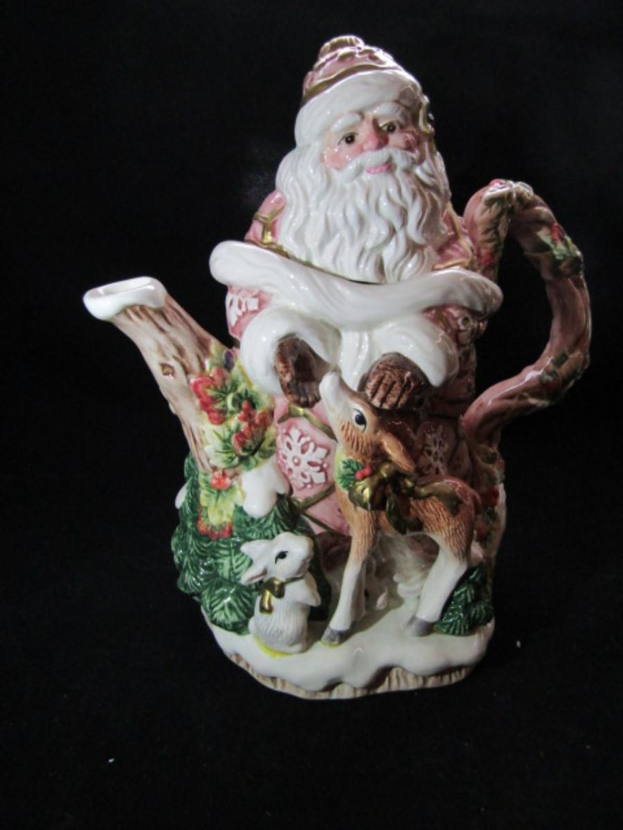 Fitz and Floyd Ceramic Teapot- Santa with Wild Friends Design (#311)